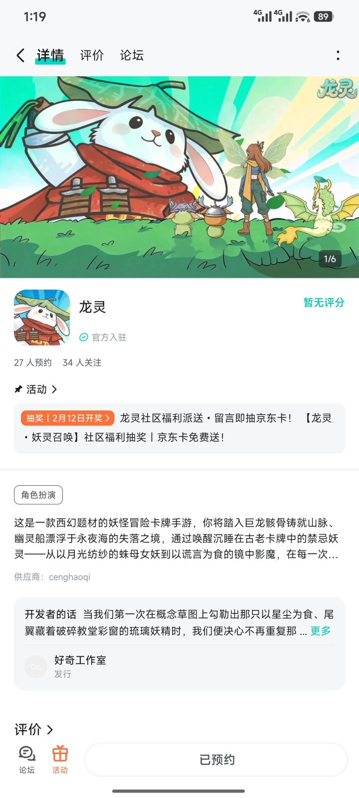 踏入巨龙骸骨铸就的山脉、航行永夜海的幽灵船,唤醒古老卡牌中的禁忌妖灵 —— 蛛母女妖、镜中影魔、堕落巨像…… 在策略与宿命交织的西幻异世,组建你的专属妖灵队伍,揭开诸神黄昏后的失落纪元!为感谢各位御灵师的到来,官方社区送上简单福利抽奖,人人可参与~🎁 活动奖励抽取 1 位幸运玩家,赠送京东卡 1 张📝参与条件1.点击预约《龙灵》并发新帖晒截图2.在本帖下方评论区分享发帖链接即可⏰奖品