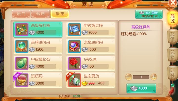 一、点击左上角“商店”按钮,可以打开商店系统二、商店分热门、常用、珍宝三个类型热门:折扣商店,每周刷新一次,折扣商品,并显示折扣。并且存在数量限购。常用:为元宝出售道具,不做数量限制。珍宝:折扣商店,每天21点刷新一次,并且存在数量限购。2144《水煮三国》运营团队