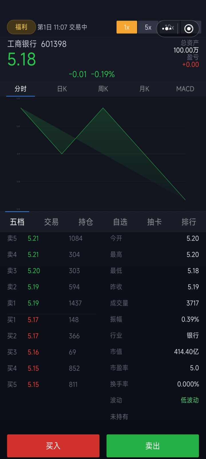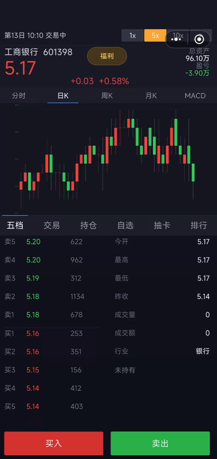 再说说界面这块吧,纯 2D 的画面,基本都是色块拼出来的 UI,结构倒是简单直白,股票的涨跌曲线和基准线标得明明白白,光看这个来判断买卖时机其实完全够用。但问题是界面布局是真的太糙了,我用手机玩的时候,右上角的按钮直接跟 TapTap 自带的按钮叠在一起了,完全点不到,甚至连个正经的退出按钮都找不到,还有不少文字重复显示的小 bug,真的感觉开发者都没拿真机好好试玩过就急着上架了。还有那个五档界面,说真的有点鸡肋,只显示了价格,又不能点进去直接挂单买卖,交易界面和五档还是分开的,用起来特别不方便,反正我玩下来全程只看曲线,五档基本就没点开过。