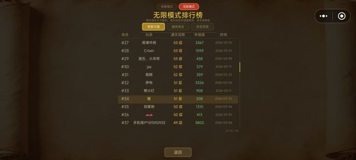 还行,通关了,无限开始没注意调阵容,浪费了好多复活,后来难打的时候要多调一下阵容,排名会好高,打了好几个小时