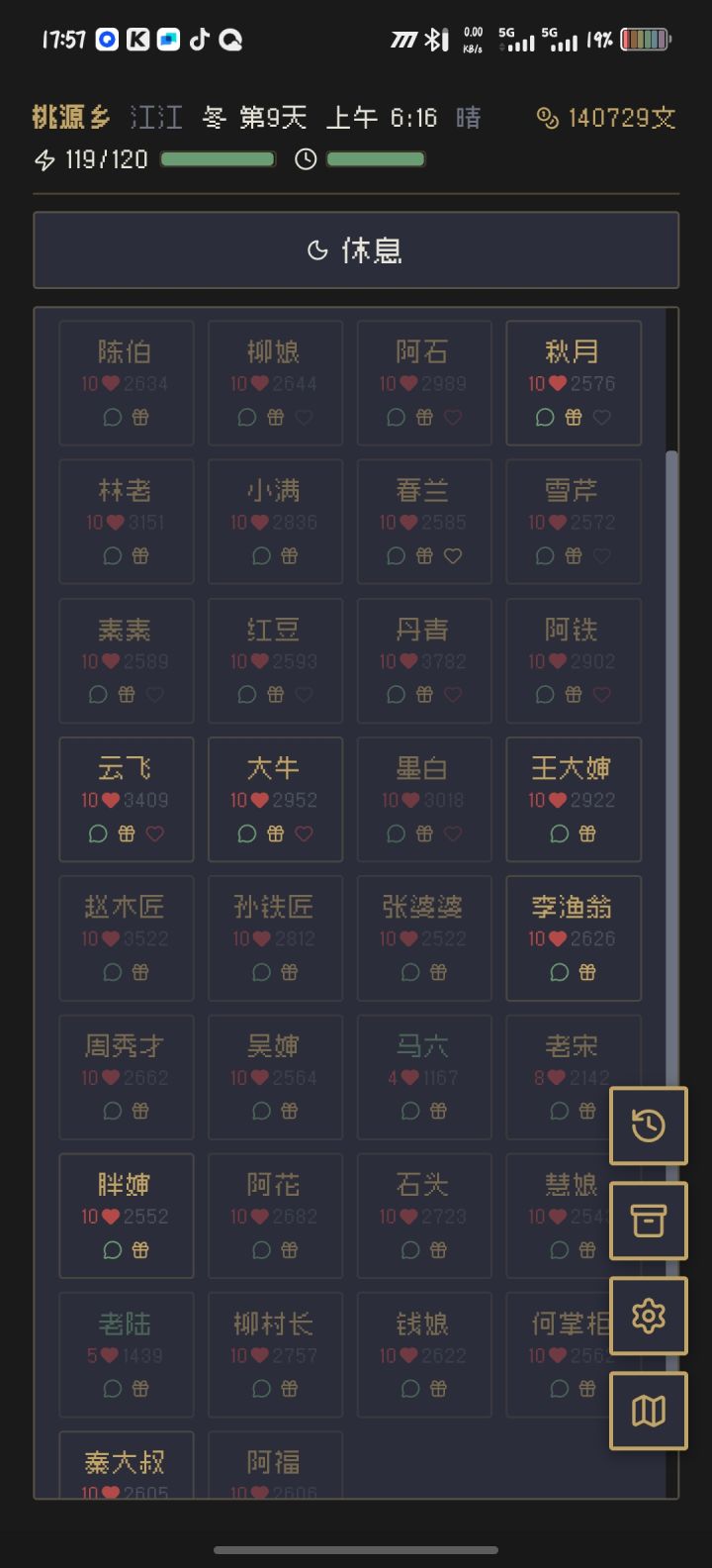 人物UI界面也很烦躁那个操作体系,可以把那个人物的单独界面列出来,不要老是跟地图移动放在一起,包括成就,单独列出来,随便上个ai像素立绘,也要好的多,现在这个很乱,而且很麻烦。包括矿井里面也没什么用,大半天弄到60层给的奖励寥寥无几。