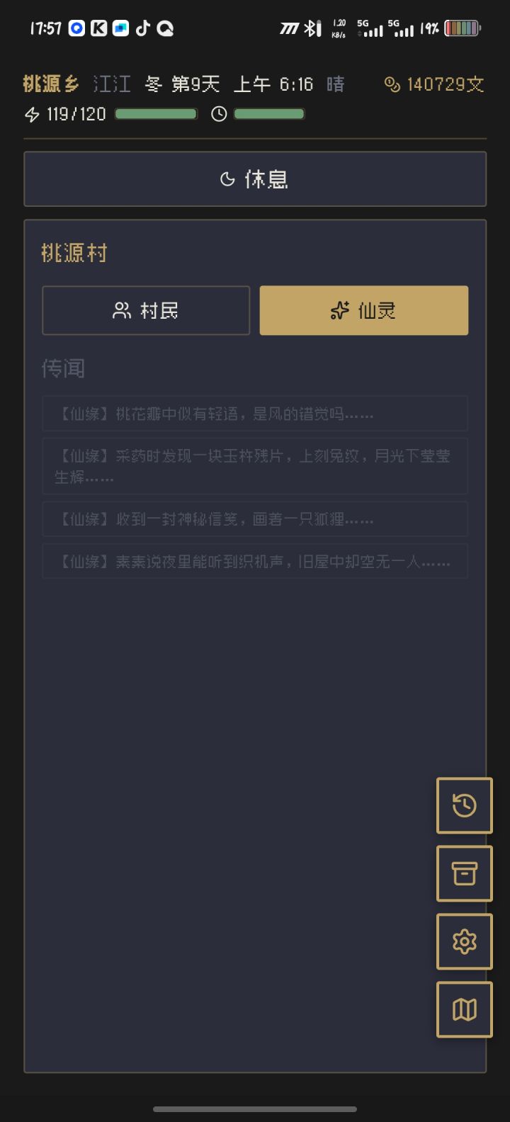 2.物品获取方式模糊,虽然有提示但也很迷,比如那个仙灵我看有四个,完了四个传闻我都有了但是并没有见到仙灵,刚触发一个狐狸的让我黄昏去人多的地方聊天,我sl重来两次也没有见到仙灵,建议在地图里加个问题引导,不知道的能查找