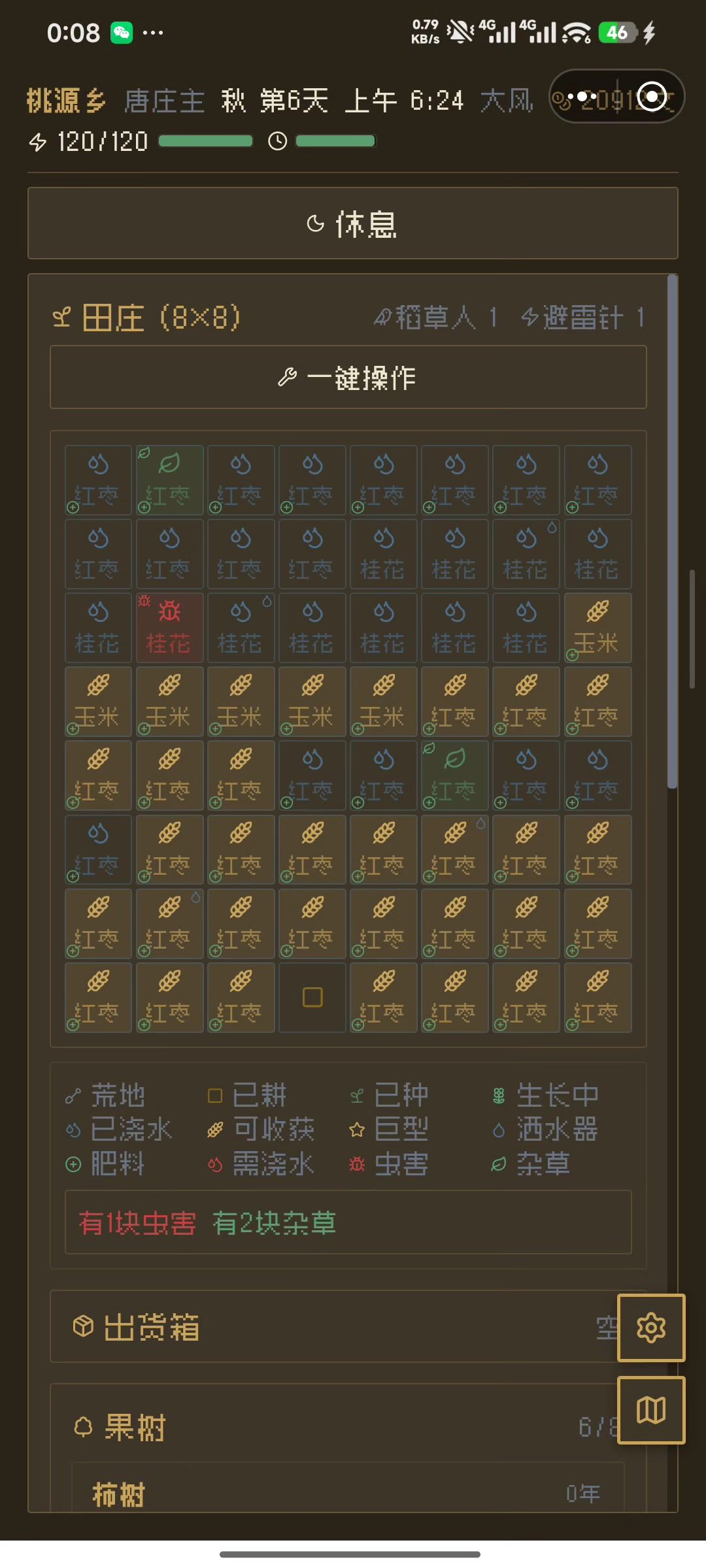 比如温室,树种满以后占很长一段,温室在最下方还需要二次点击才能打开,希望能调整到出货箱下方果树上方位置,和田庄一样打开页面直接能种。还有现在采脂器松树不知道为什么只能装最后一个,剩下两个装不上,砍树也显示樟树。加工坊希望能像商圈的购买和出售按钮一样一样分为加工区和制造区,现在的制造区太长了而且机器箱子之类的造完以后就不怎么需要再点了,需要经常点击的加工区要滑动很长的距离还容易点到制造区里面的内容