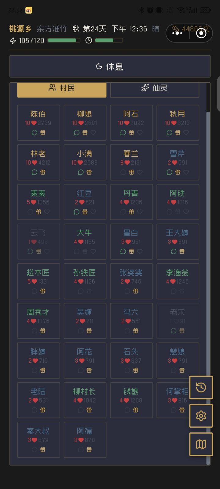 在群友补充下最爱和喜欢全都有了,幸运兔脚全角色喜欢,游商星期五,七出现,兔子产蓝色兔毛时开始产兔脚12只兔子3-5天1-2个好像跟天气有关牧场:建议养一只羊驼和一只羊刷NPC礼物好感满了以后卖掉,鸡可以养一到两只不用卖因为很多菜可以用鸡蛋做,其他的全养孔雀和猪NPC不在村原因:阿石,周秀才,村长,雪琴:体制内工作双休出去玩了赵木匠,孙铁匠,阿铁,小满:打螺丝的星期天不上班出去玩了云飞:自