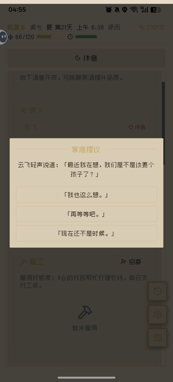 事先说明,本篇攻略仅代表个人观点,不一定准确,对游戏有问题欢迎大家讨论。...最新:2.4桃源山庄非常nb,推荐选桃源山庄开局。...(攻略篇1-赚钱) 开局推荐选养鸡的山庄,然后把鸡卖了,去商店买水蜜桃种子,药铺买生长激素,体力不够就吃几个桃子,注意雨天去溪流淘金(买雨图腾淘金也行,目的是为了做装备,旅行商人的月光石要买),然后卖桃子,钱有了5000就去买土地扩充。钱多了可以买高级激素