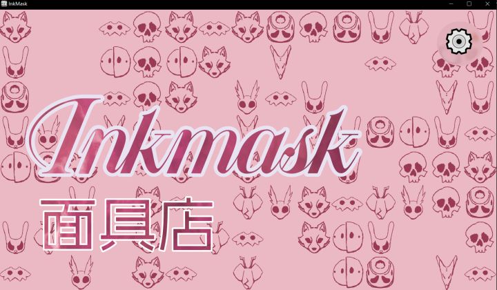主界面的设计很好看啊,粉色的中英文标题《INKMASK 面具店》艺术字中间有云彩在飘动,背景里各种动物的面具在不停的闪动,和标题图完全不是一个风格的感觉。不过游戏的音乐好像不会循环,我放置了一会就没有声音了。