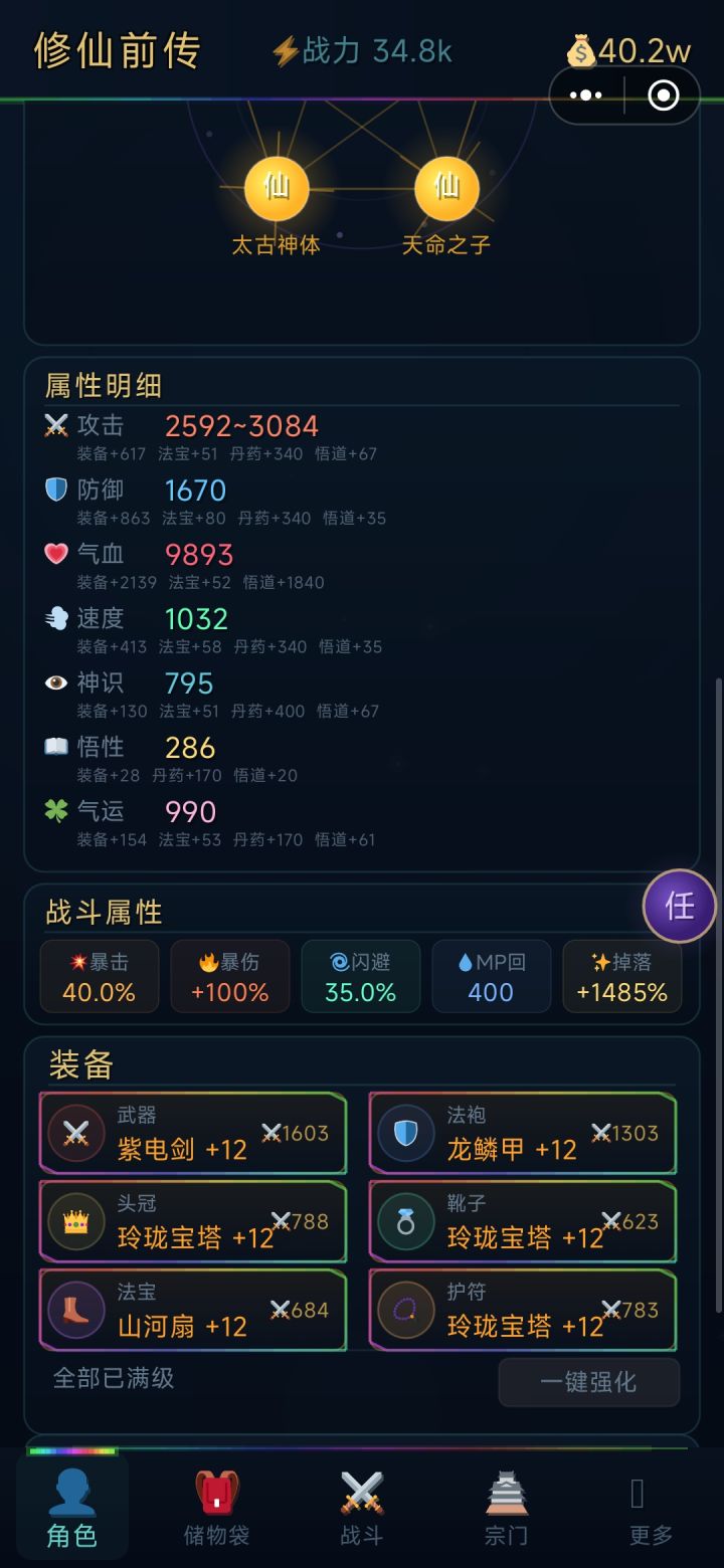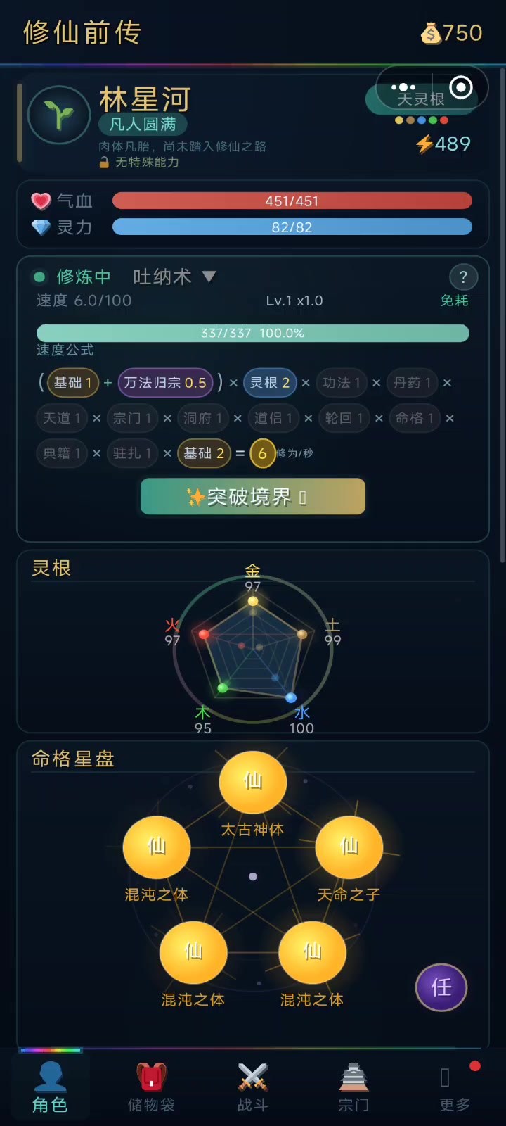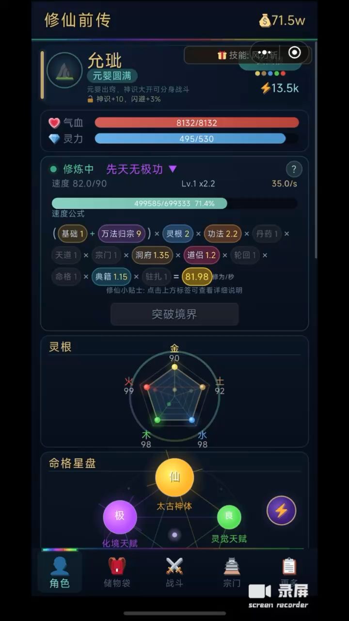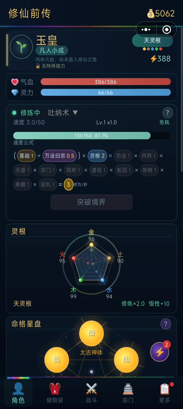 灵根好刷直接天 命格将近半小时2仙2极就这吧 本来想刷3仙的 肝不动了