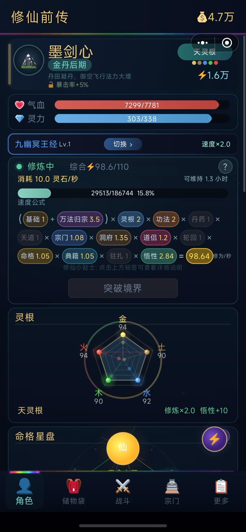 不知不觉玩了一天了,化神后也一转了,升级的途径有自身,装备和灵兽,可玩性挺高的!堆技能过关也有意思!