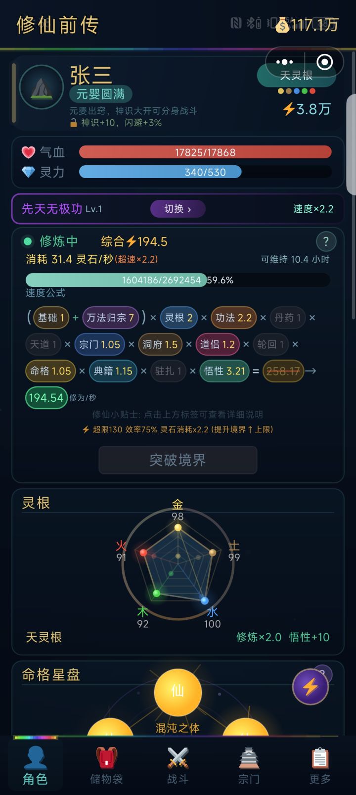 天赋什么的都很好刷,相比其他挂机游戏,这个看广告算很少的了,一般也是九秒广告。主要还是物品那些很好爆,一天时间到金丹元婴是没问题的,装备啥的也都能跟上来。
