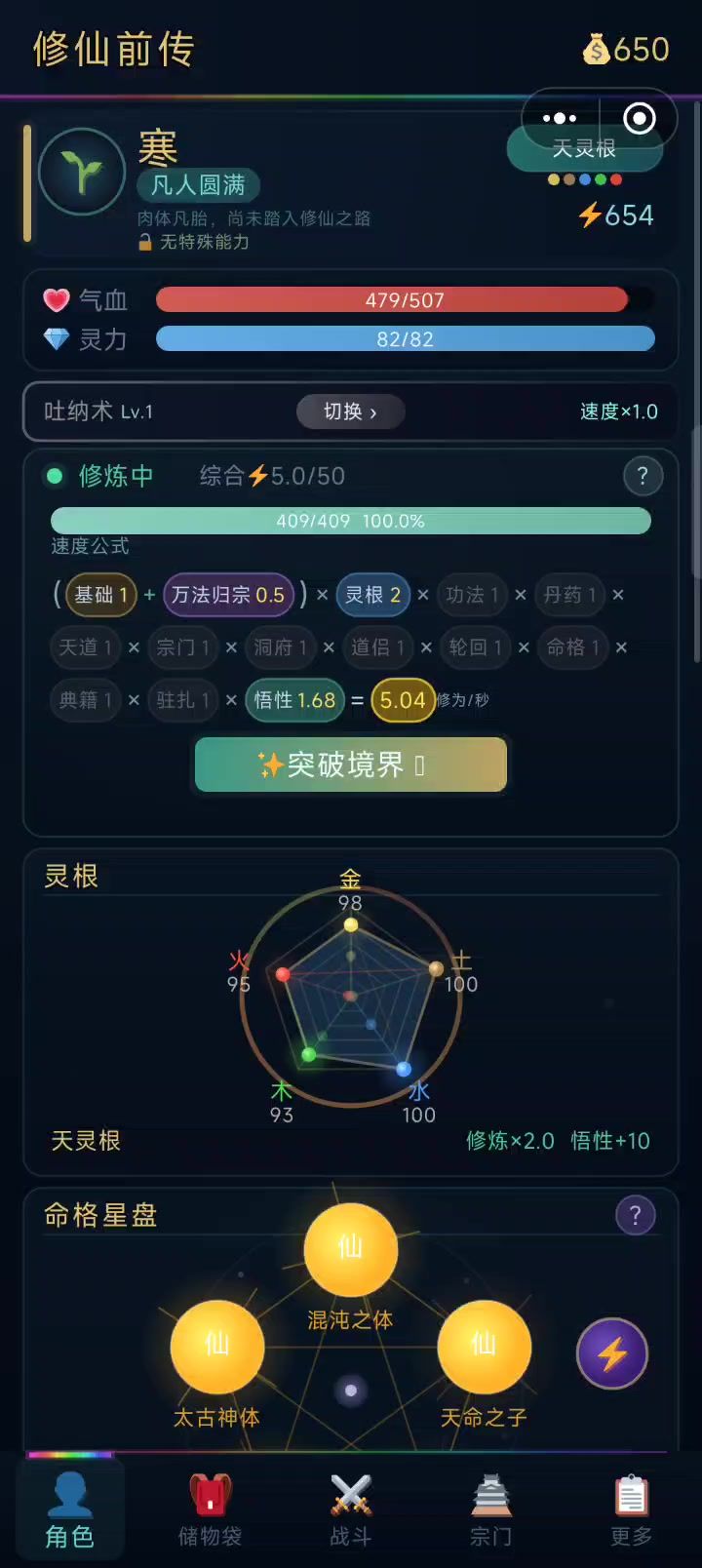 一、 核心思路主叠血量(生命)+防御。利用装备被动技能“烈焰反击”作为主要输出手段,实现硬刚BOSS、安稳通关。二、 开局天赋推荐(天灵根&五金天赋)冲榜追求战力: 5×太古神体(攻击加成高,战力数值好看)。追求快速通关: 5×混沌之体(全属性+25%,血防成型极快)。平民/休闲: 凑齐5金即可,甚至随缘天赋也能靠此套路轻松通关。三、 经济策略:快速积攒灵石前期搞钱: 炼制“培元丹”