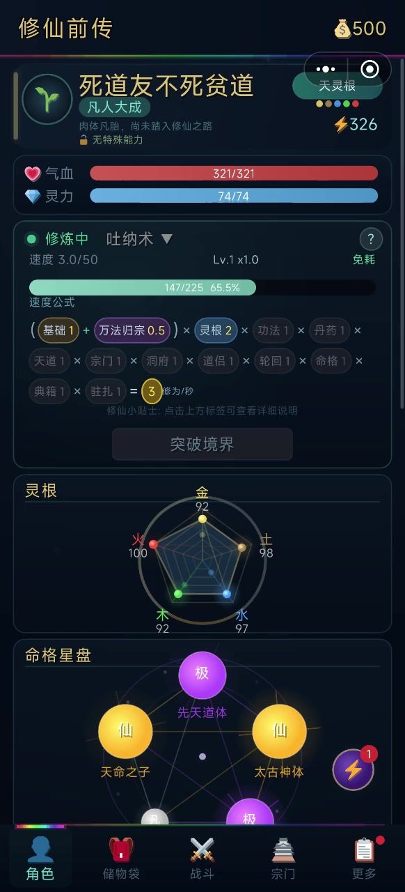 灵根好刷直接天 命格将近半小时2仙2极就这吧 本来想刷3仙的 肝不动了