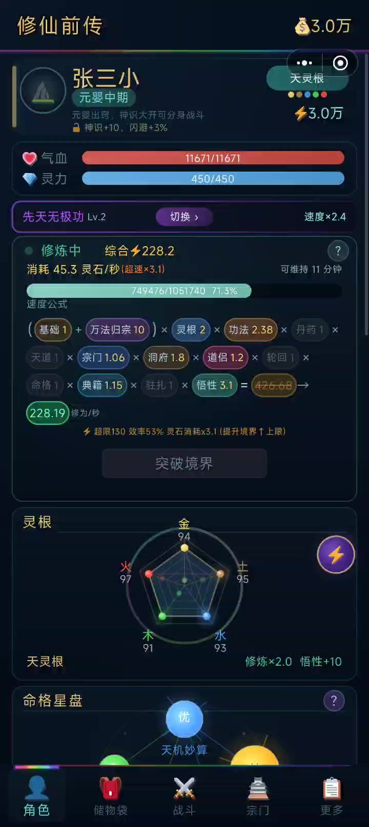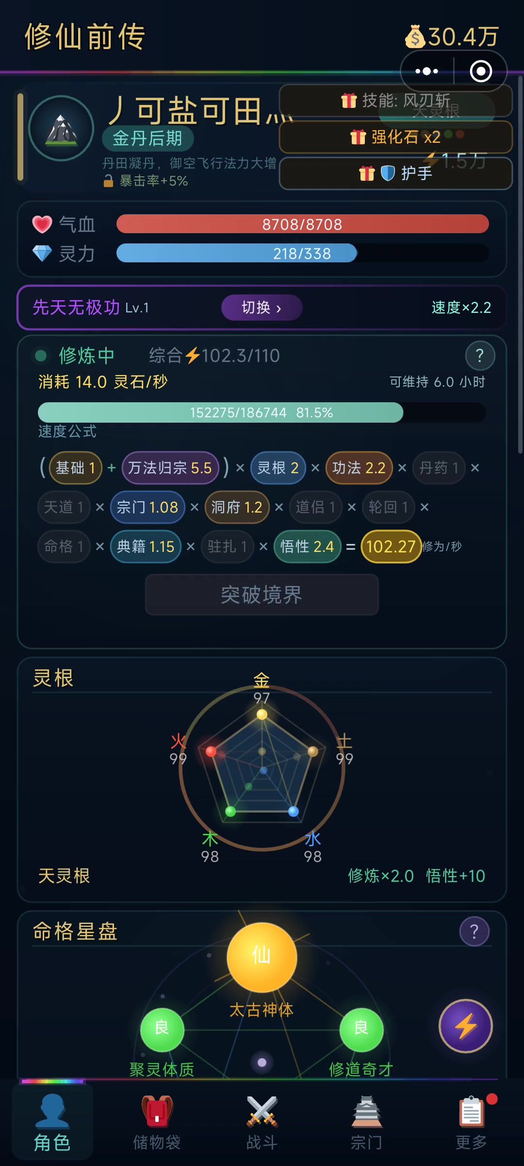 灵根好刷直接天 命格将近半小时2仙2极就这吧 本来想刷3仙的 肝不动了