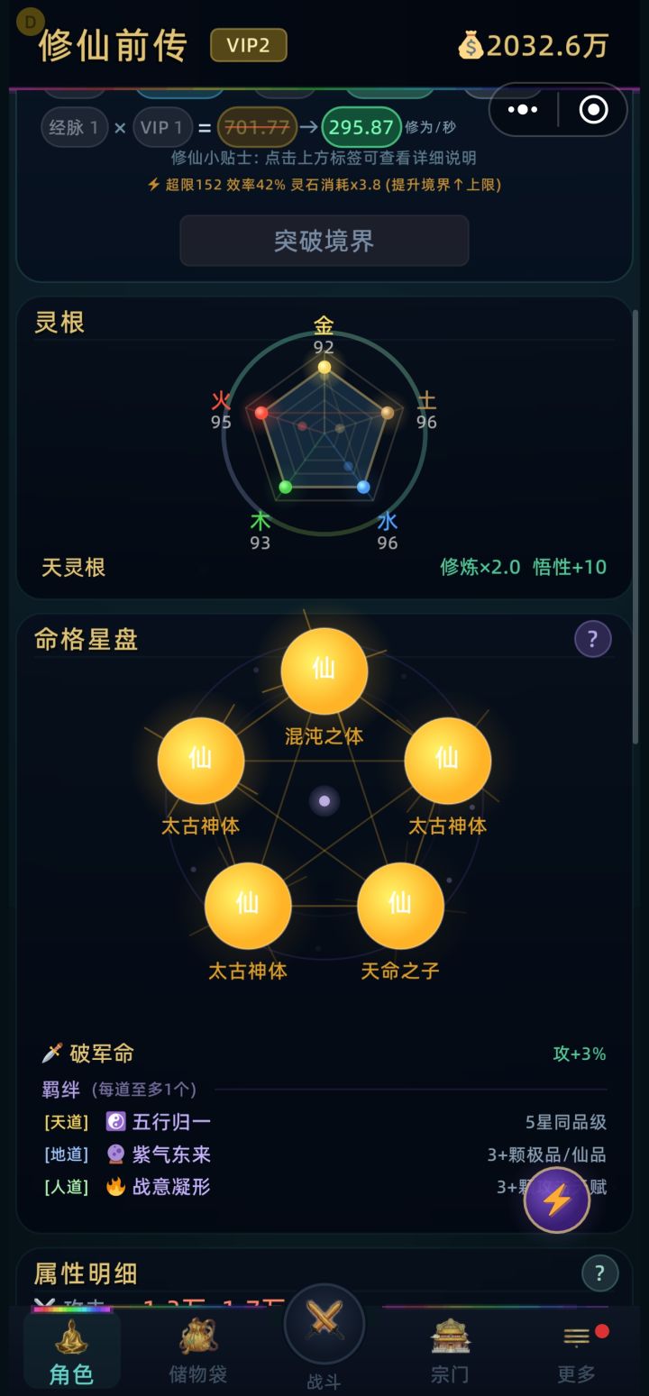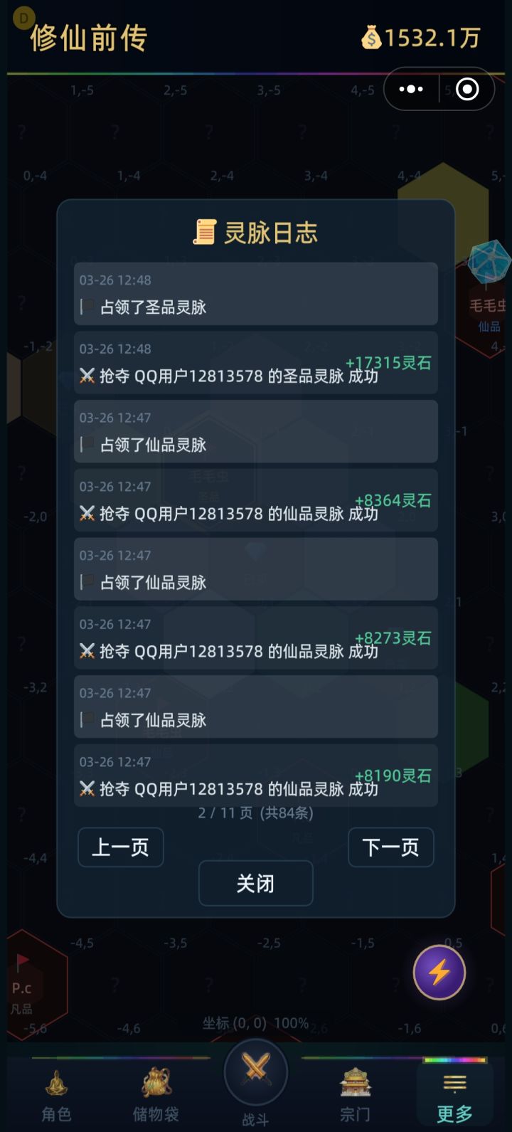 一次五连100亿,经脉,灵兽,炼丹都是花钱越来越夸张。离线基本没钱,目前基本是24小时手机不退游戏,一直在最高等级地图的20层挂着,一天也就20多亿。根本不够花。加的宗派看别人那种捐上万亿几万亿的,都是开挂了,但也有一些捐几百亿上千亿的,是不是有什么我没发现的赚灵石的办法