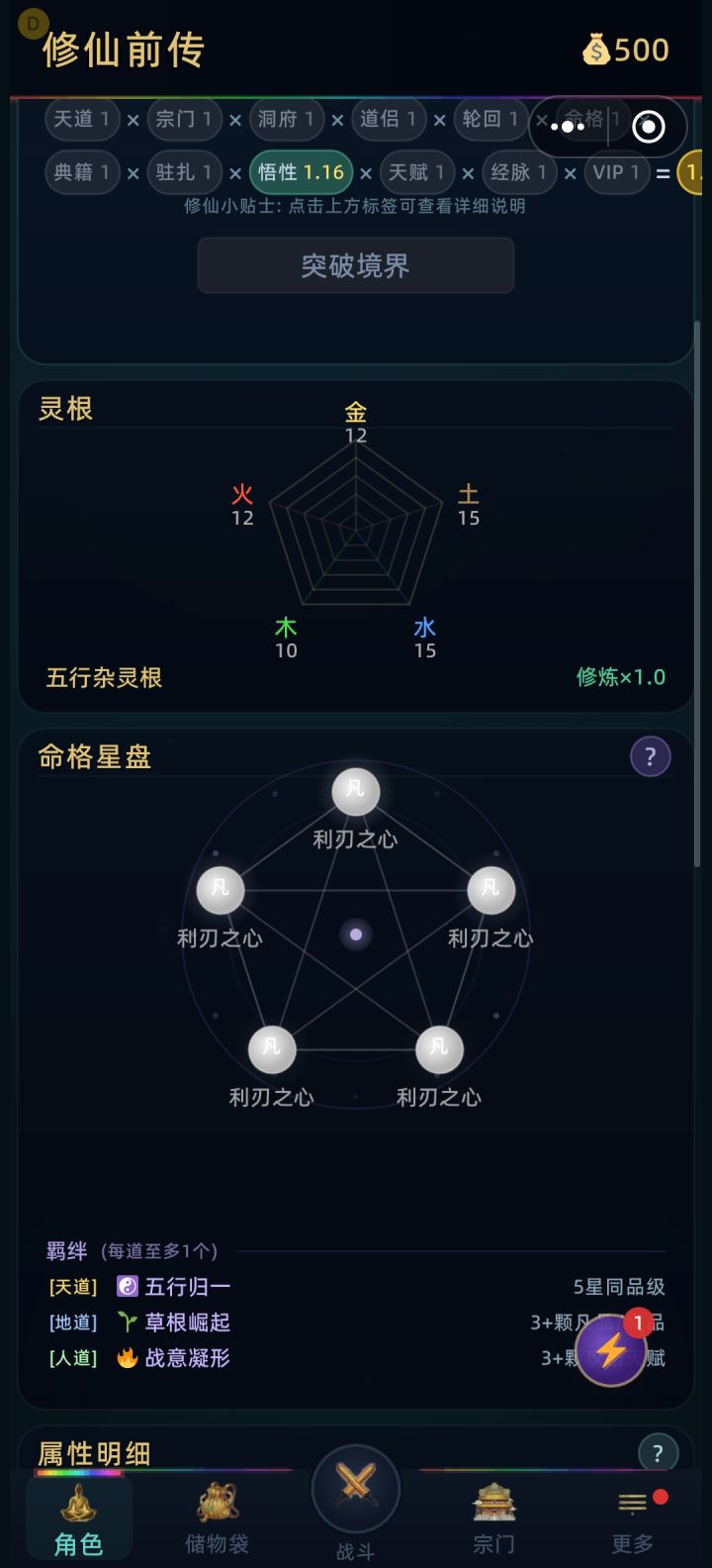 一、 核心思路主叠血量(生命)+防御。利用装备被动技能“烈焰反击”作为主要输出手段,实现硬刚BOSS、安稳通关。二、 开局天赋推荐(天灵根&五金天赋)冲榜追求战力: 5×太古神体(攻击加成高,战力数值好看)。追求快速通关: 5×混沌之体(全属性+25%,血防成型极快)。平民/休闲: 凑齐5金即可,甚至随缘天赋也能靠此套路轻松通关。三、 经济策略:快速积攒灵石前期搞钱: 炼制“培元丹”