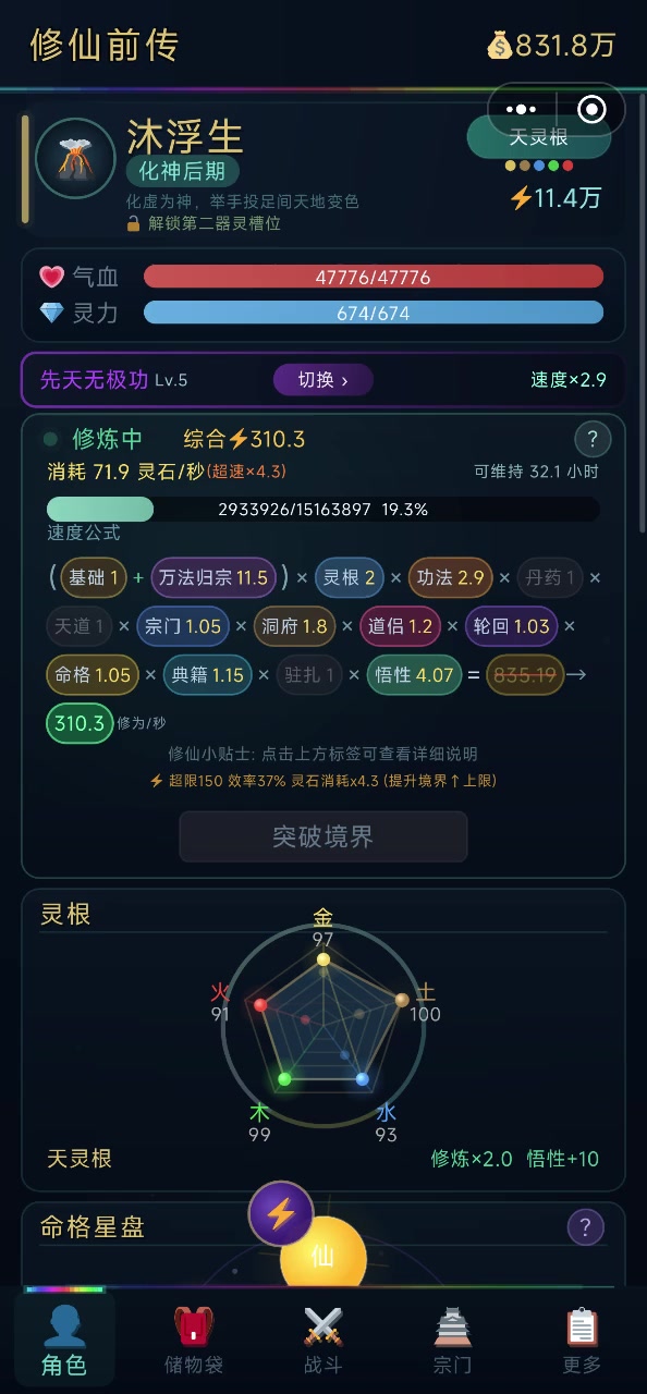 玩了大概三四天,感觉挺好。天灵根没那么难,五橙也不难,反而要注意选哪五个。 提个建议,爬塔!转生以后再爬,太费时间了。