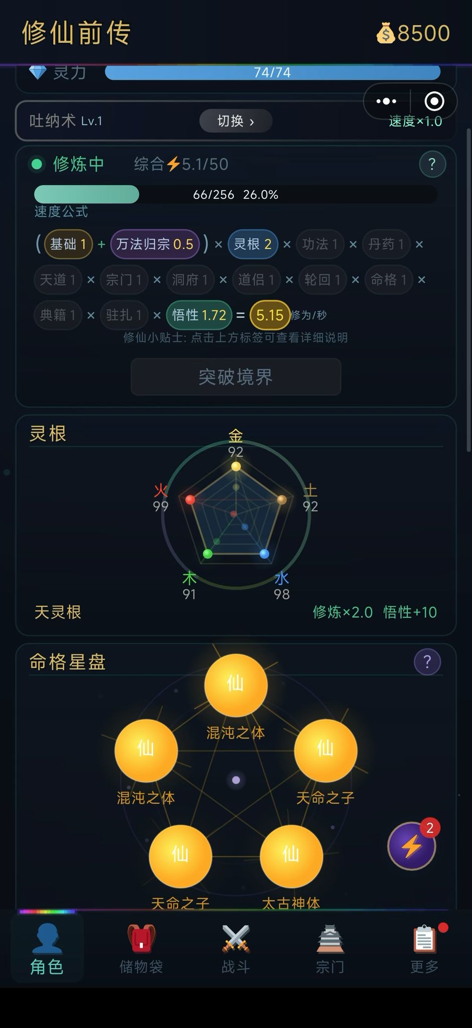 玩了大概三四天,感觉挺好。天灵根没那么难,五橙也不难,反而要注意选哪五个。 提个建议,爬塔!转生以后再爬,太费时间了。