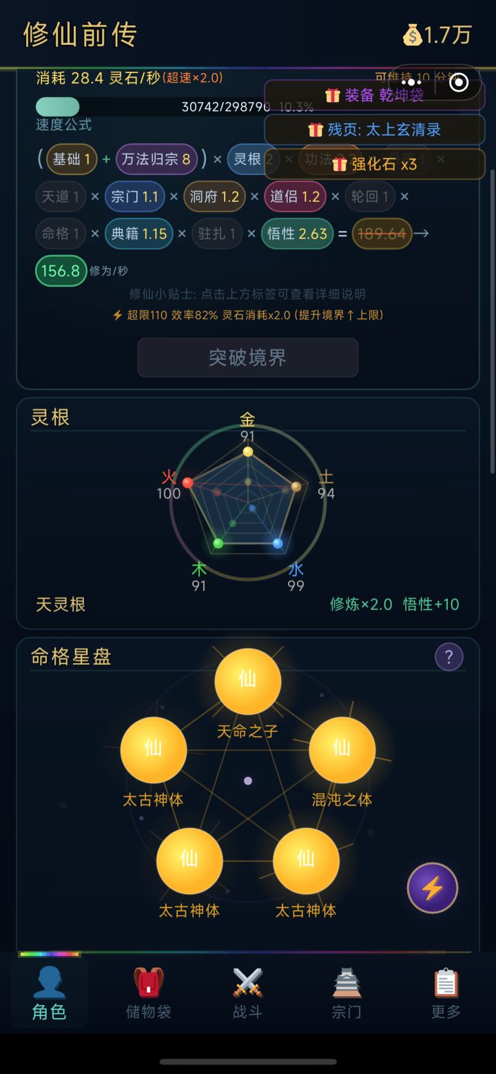 天赋什么的都很好刷,相比其他挂机游戏,这个看广告算很少的了,一般也是九秒广告。主要还是物品那些很好爆,一天时间到金丹元婴是没问题的,装备啥的也都能跟上来。