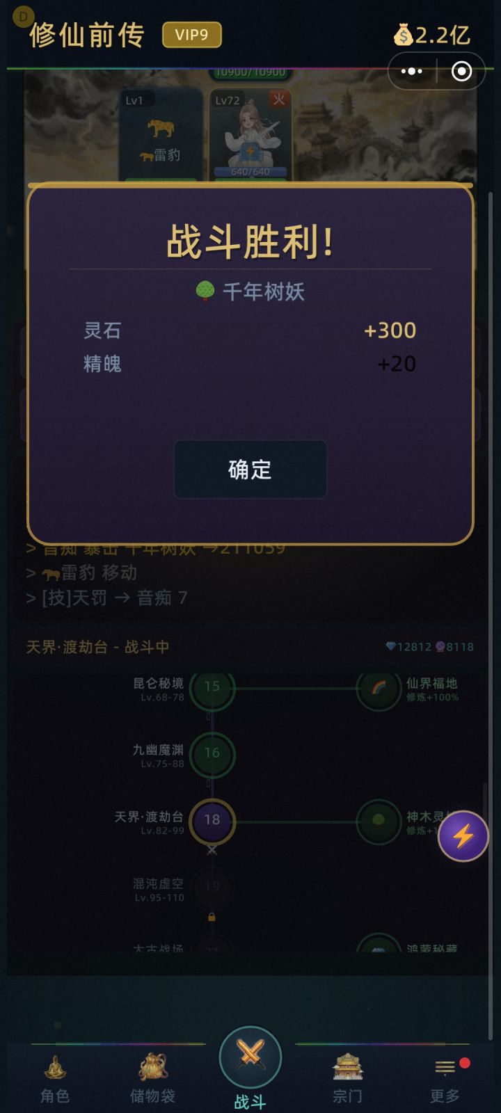 一次五连100亿,经脉,灵兽,炼丹都是花钱越来越夸张。离线基本没钱,目前基本是24小时手机不退游戏,一直在最高等级地图的20层挂着,一天也就20多亿。根本不够花。加的宗派看别人那种捐上万亿几万亿的,都是开挂了,但也有一些捐几百亿上千亿的,是不是有什么我没发现的赚灵石的办法