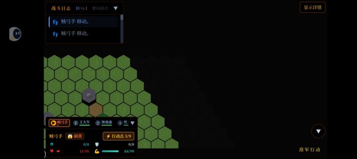 今天试了一下最高难度新档。发现上个档没士气的远程可以跑出图,而不是溜边走了。作者大大也是很给力啊。但是最高难度对面的弩手这样设计不是白给吗。他不会往前走,距离又比弓箭短完全可以用弓箭手白嫖啊。简单难度远程站在原地给刚玩的新手降低难度可以理解。但是最高难度还是一样远程站在原地发呆,就很笨啊。明明是一个战局变成两个战局了。对面远程根本就没提战士分担输出,只有最后战士被打完了才能被迫输出。还是说作者大大