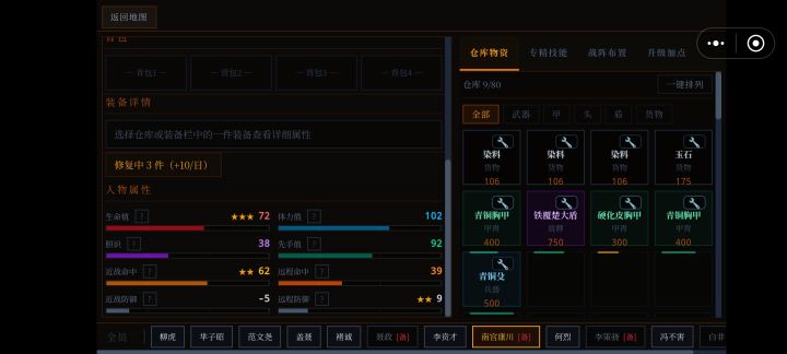 玩这个游戏一段时间了,没看到有新手攻略,自己简单总结一下以供参考,有不对的地方请大家抨击哈哈哈哈1.开局出身游戏有好几种开局,各有优劣也有中庸开局,各种加成减益也标的很清楚,这里就不多赘述了。2.人物属性 1)选完开局之后就到了人物随机界面,各个开局会给不同职业的人物,职业只影响基础属性分布,比如老将、游侠这一类的基础近战命中会高一些,猎户、斥候这类职业的基础远程命中会高。