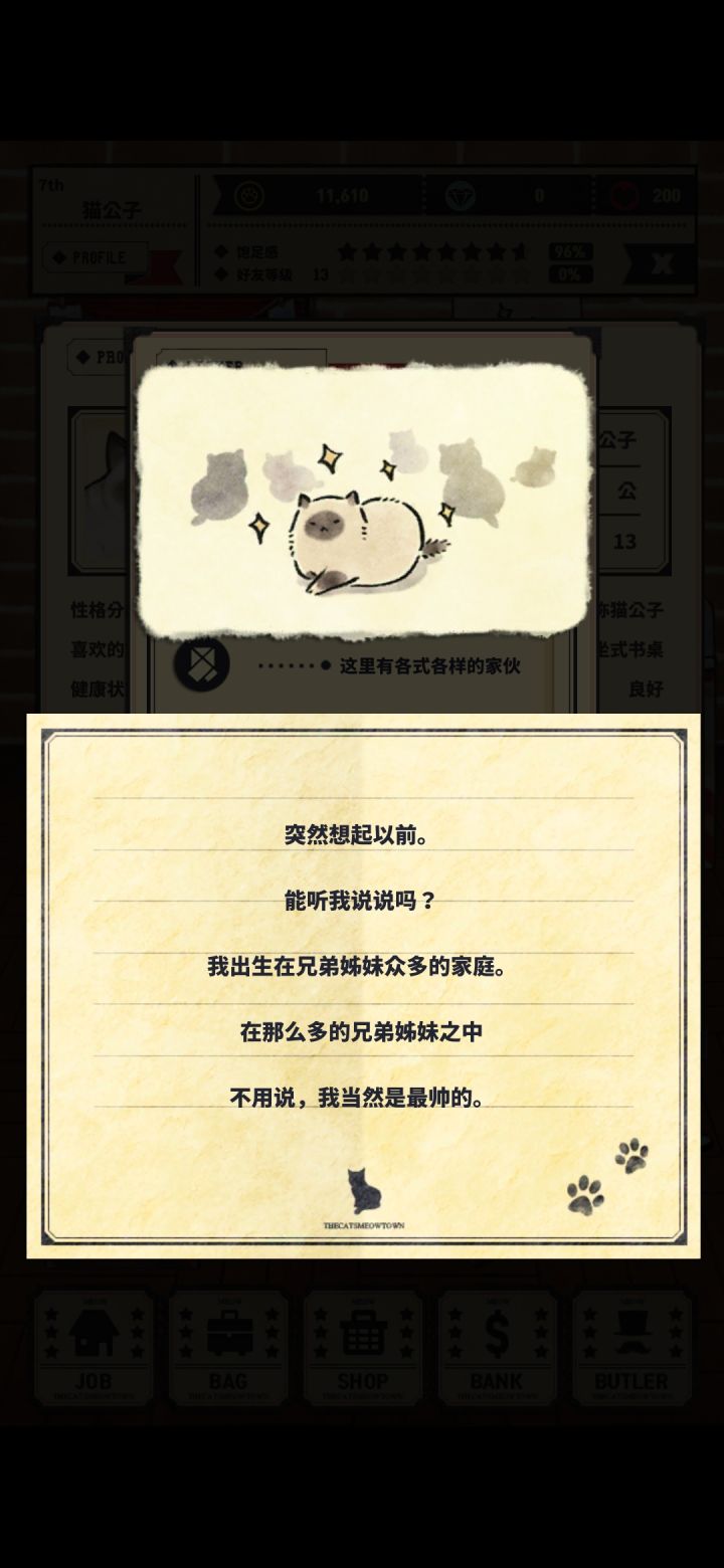 他有可能是猫鼻支的原因,幼猫感染死亡率高,不过看体型他已经治疗很久了。唉,是个小傲娇,平时总说着自己贵族怎么样的,实际很希望被关注。老样子回忆+互动,还有最后的装饰。