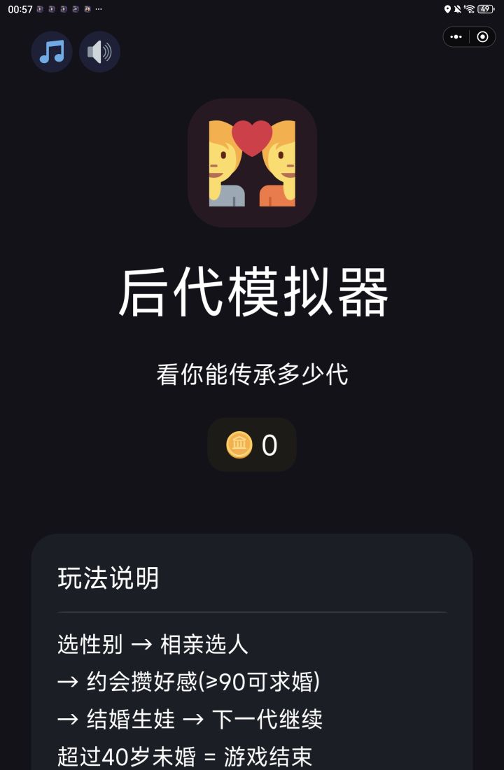 我给女后代数值拉高点匹配到的异性就烂的跟屎一样,颜值高的不是和别人暧昧就是扣,要么就是丑还事多的,说是后代模拟器,其实是相亲模拟器,吃了相亲就没别的事了。