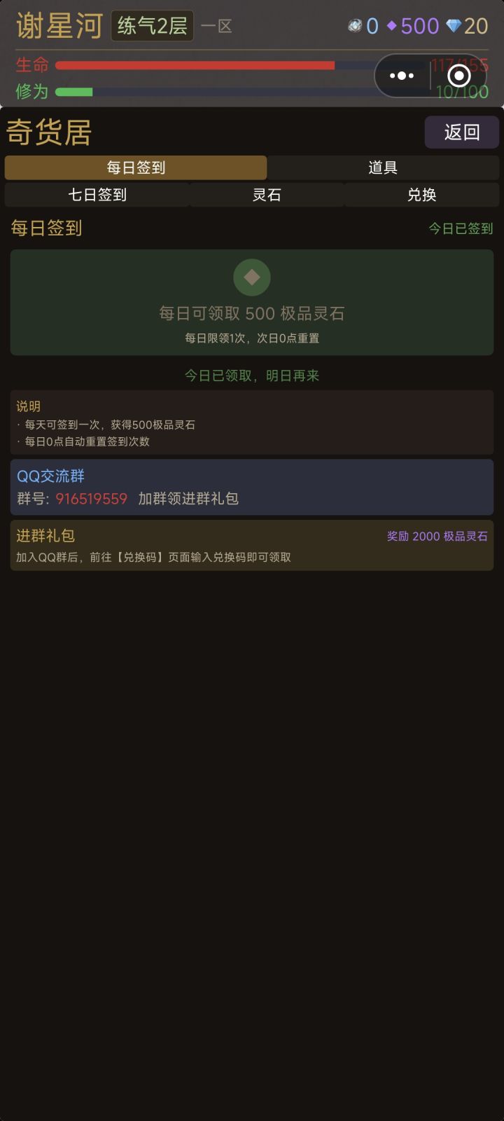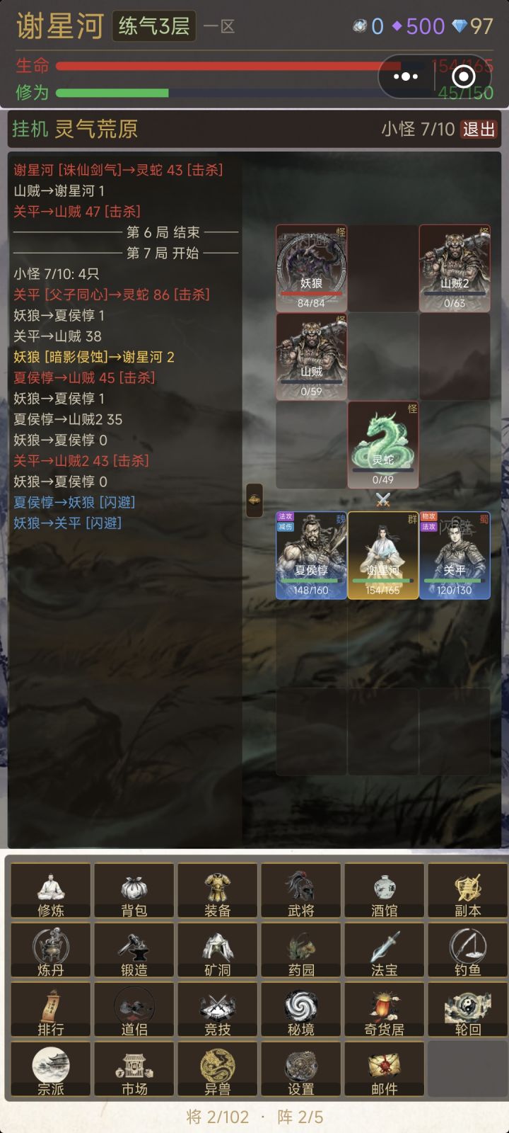 进游戏按步骤1.领所有礼包,极品灵石留个2000,其他全换灵石抽英雄,前期就靠英雄,后期才需要主角。有魔张辽就行(其实都无所谓)。2.第一步完成后,把所有英雄都下了,就上一个魔张辽,主角也不上(上其他输出卡也行),然后刷秘境,每一个打一次后直接扫荡。然后修为满了就升,每个大境界都有对应的秘境,秘境刷完去升道侣,(第一时间把所有道侣拉满,提升修为加成)从蓝色的开始升。3.药、矿、钓鱼、选可以