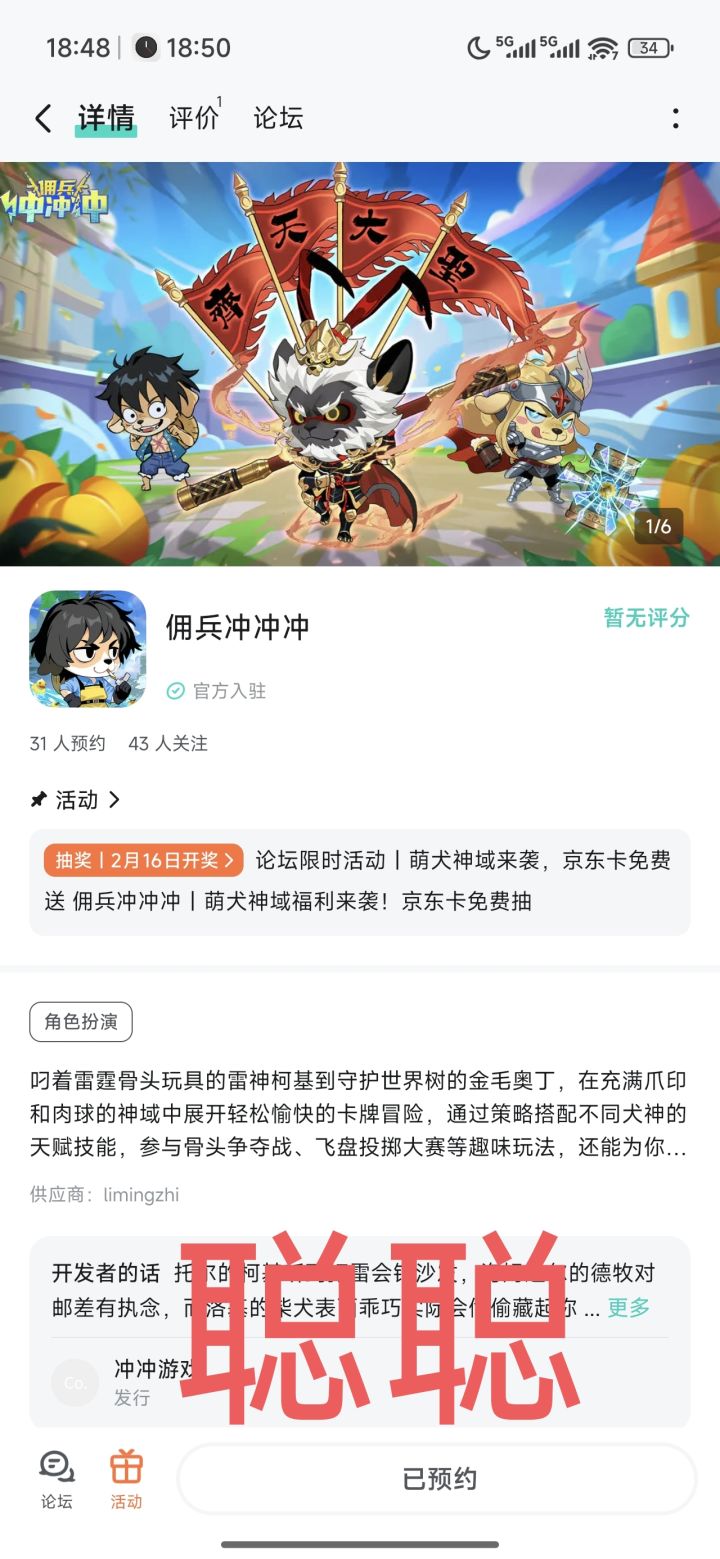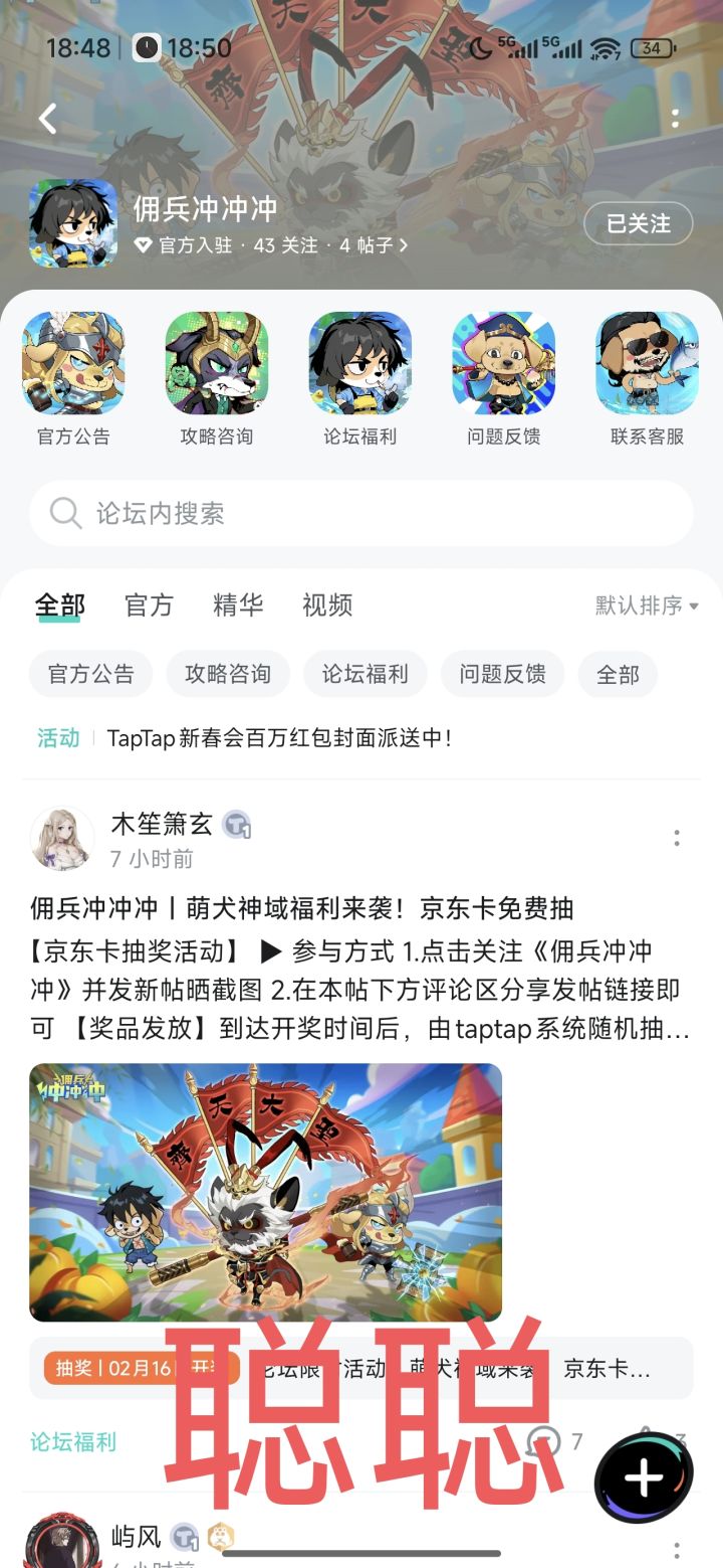 【京东卡抽奖活动】▶ 参与方式1.点击关注《佣兵冲冲冲》并发新帖晒截图2.在本帖下方评论区分享发帖链接即可【奖品发放】到达开奖时间后,由taptap系统随机抽取符合要求的幸运玩家,自动发放兑换码(对于同一账号大量故意发布评论刷楼层导致其他玩家中奖概率降低的行为的用户,将会可能被取消参与资格!)▶ 活动奖励活动结束后将抽取1位幸运儿获得1张京东卡关注社区解锁更多机缘:📢 第一时间获取