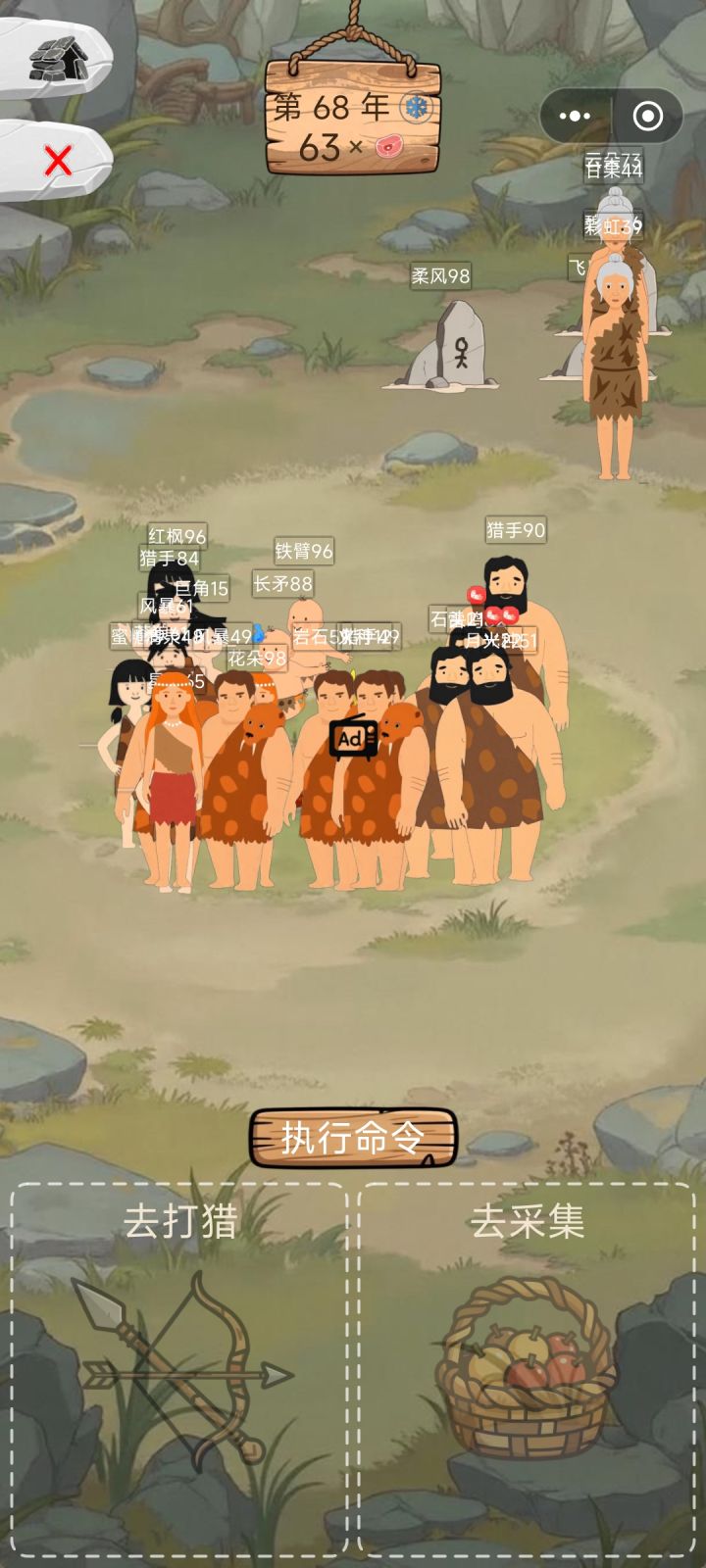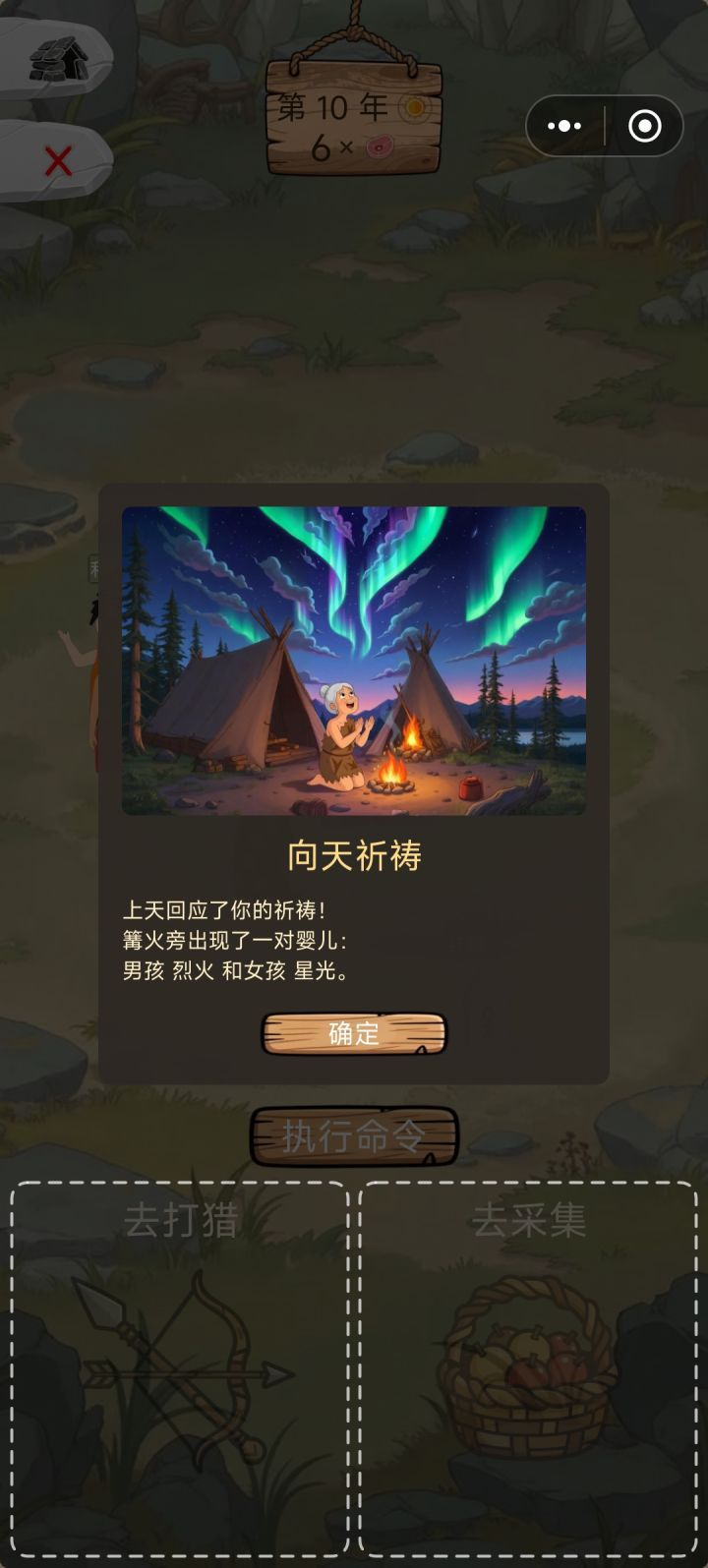 不错的小游戏,要是能自己取名就好了,前期孩子生晚了,人物老了就不能干活了,生了三个小孩后人都老了两个了,为了多生两个,只能让俩个未成年养家,结果那俩大人到老都没生,后面熬到小孩长大,老人死了,才活过来,小孩不能打猎,只能采集,采集的食物也少,早知道趁着年轻多弄点食物了,打猎概率受伤,收益高,采集收益少,不会受伤