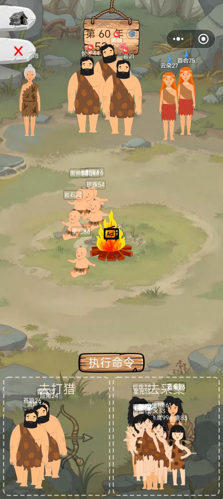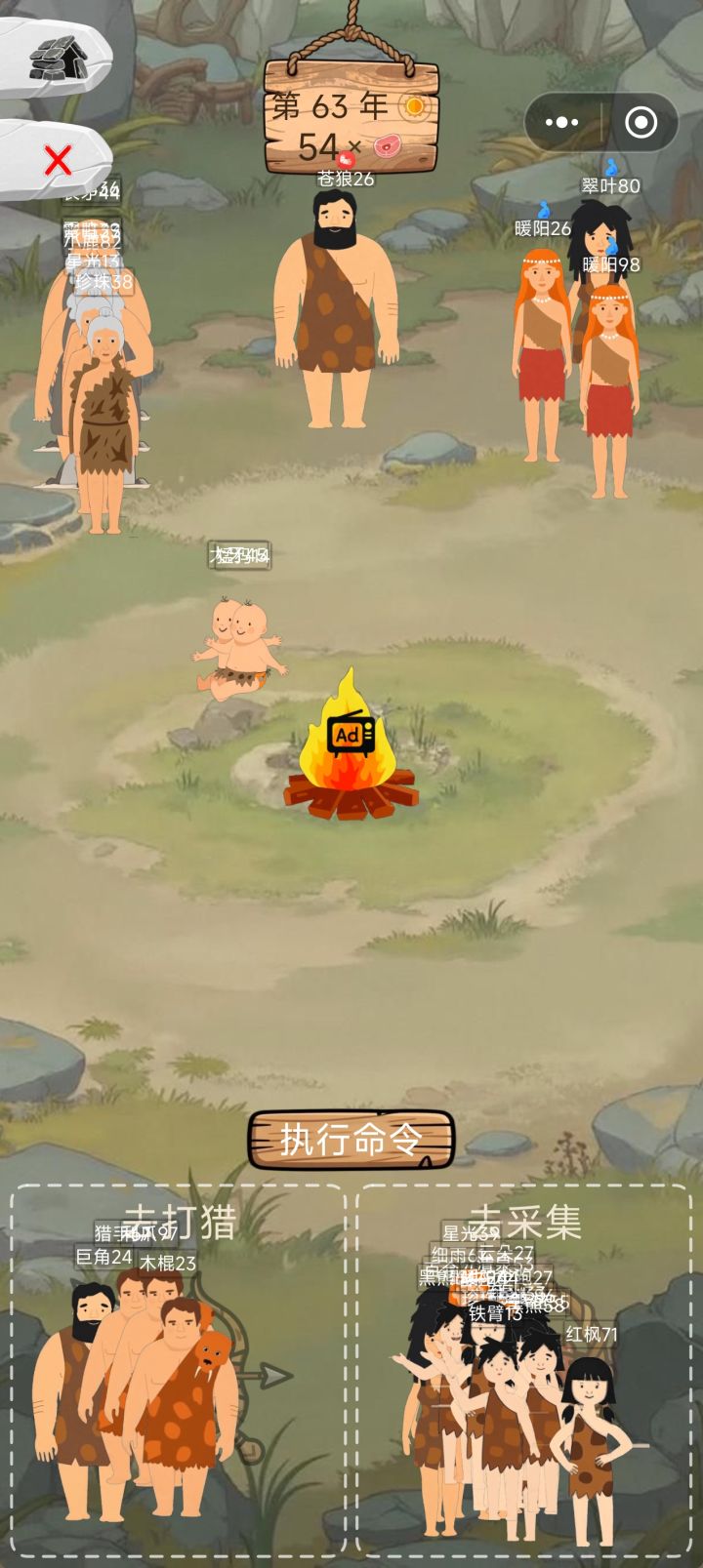 有点心疼右上角的男人,因为我人多,打猎受伤又要单独分出来一部分,我就全部去摘果子,然后一个男人配上一堆女的生孩子,除了已孕其他所有女人都跟那一个男的生,勇猛这一块