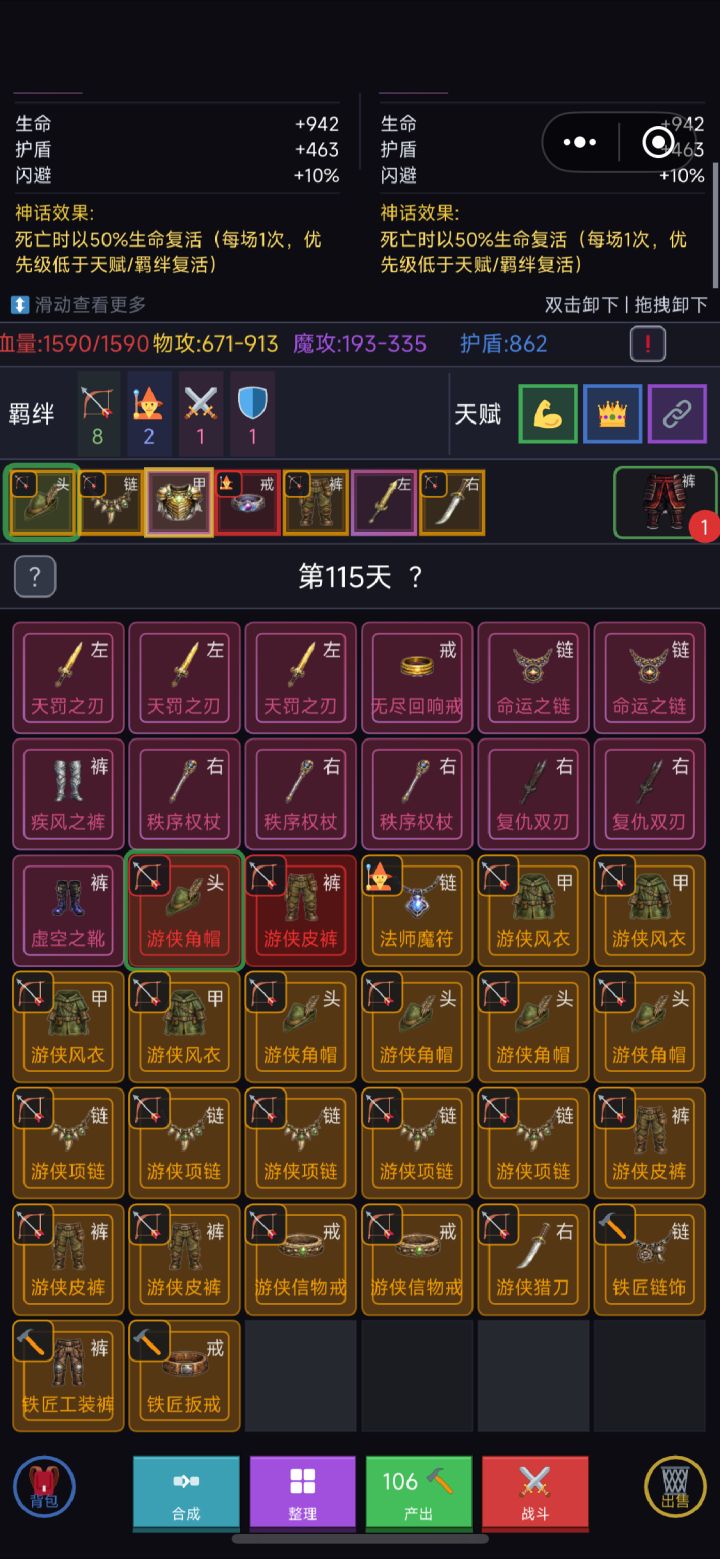 如图,物品多了以后会乱码,看不清图标和导视,缺少更快消耗装备或者更多进阶途径,希望作者改进一下