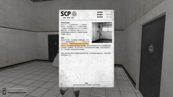 了解一点克苏鲁或者后室的人应该也对scp应该不陌生,就算没有了解过相关知识,也应该知道一点scp173的事情,就是视线必须一直对着它,一旦移开他就会瞬间移动到身边,然后杀人,而游戏序章里要面对的第一只怪就是173。