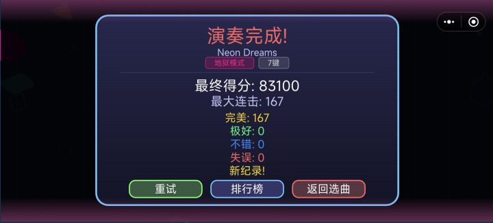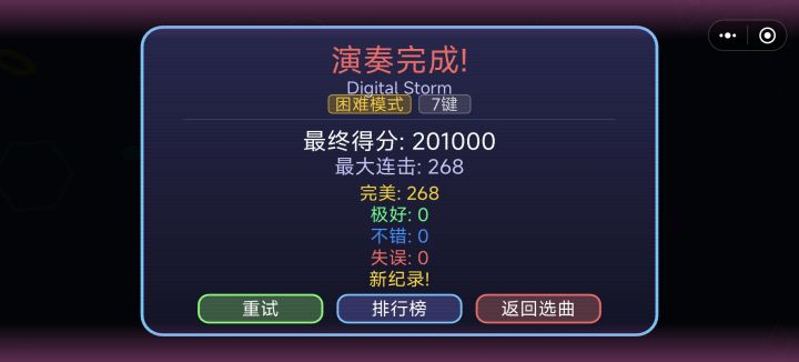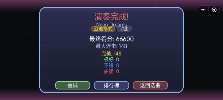 作者做的挺好的,我希望音效和音乐上能再进步一点,那个节奏我听不太准,我都不太好音押,前面一般的难度我都是直接目押的,后面打难的也还是直接目押听不太准,怎么都听不准,不知道是延迟还是怎么回事?如果有延迟的话,能不能给个延迟校准?这个我觉得最有必要