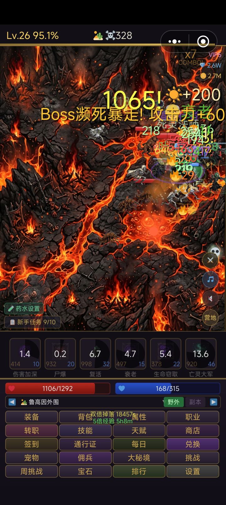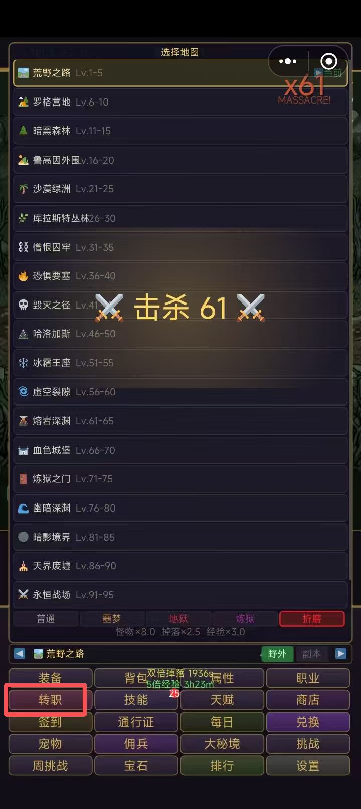 游戏有几个阶段, 第一个阶段:20级以前挂折磨一级图。 第二阶段:20以后递增等级副本的刷装备,直到带100级装备,副词条洗攻击,生命值。 第三阶段:挂100级折磨。一晚上可以50多级。(不知道现在能不能打的过套装本) 第四阶段:出暴击减cd的装备。然后起飞。(本身cd也拉满,效率会高很多) 第五阶段,100级觉醒。然后无聊。 开局蛮子直接打一级折磨本。看广告开5倍经验,属性全加力