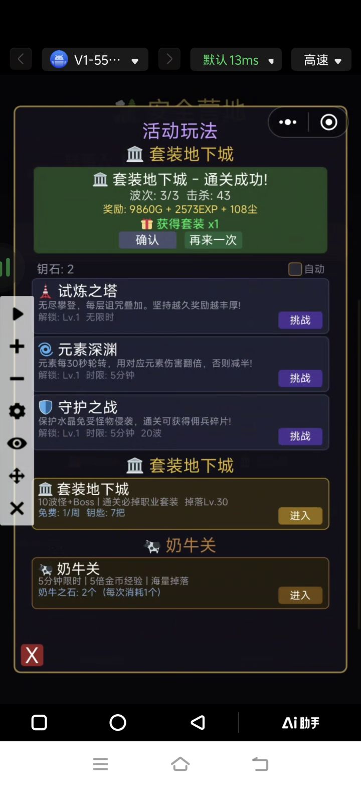 前言:从创建角色到打通套装副本一共2-3小时左右,钻石消耗3w(两级冷却上限)1. 1-10级先把商店前四个广告看一遍,主要是5倍经验和2倍爆率,就在图一挂着,出什么装备就带什么,先把装备穿满,然后把自动分解白蓝勾上,等一身黄装之后可以把精炼黄装勾上。装备选攻击和暴击几率高的带技能选最左边那条线一直往下点属性加点全部加力量天赋点优先点出时间领主2. 11-20级10级左右把身上的黄