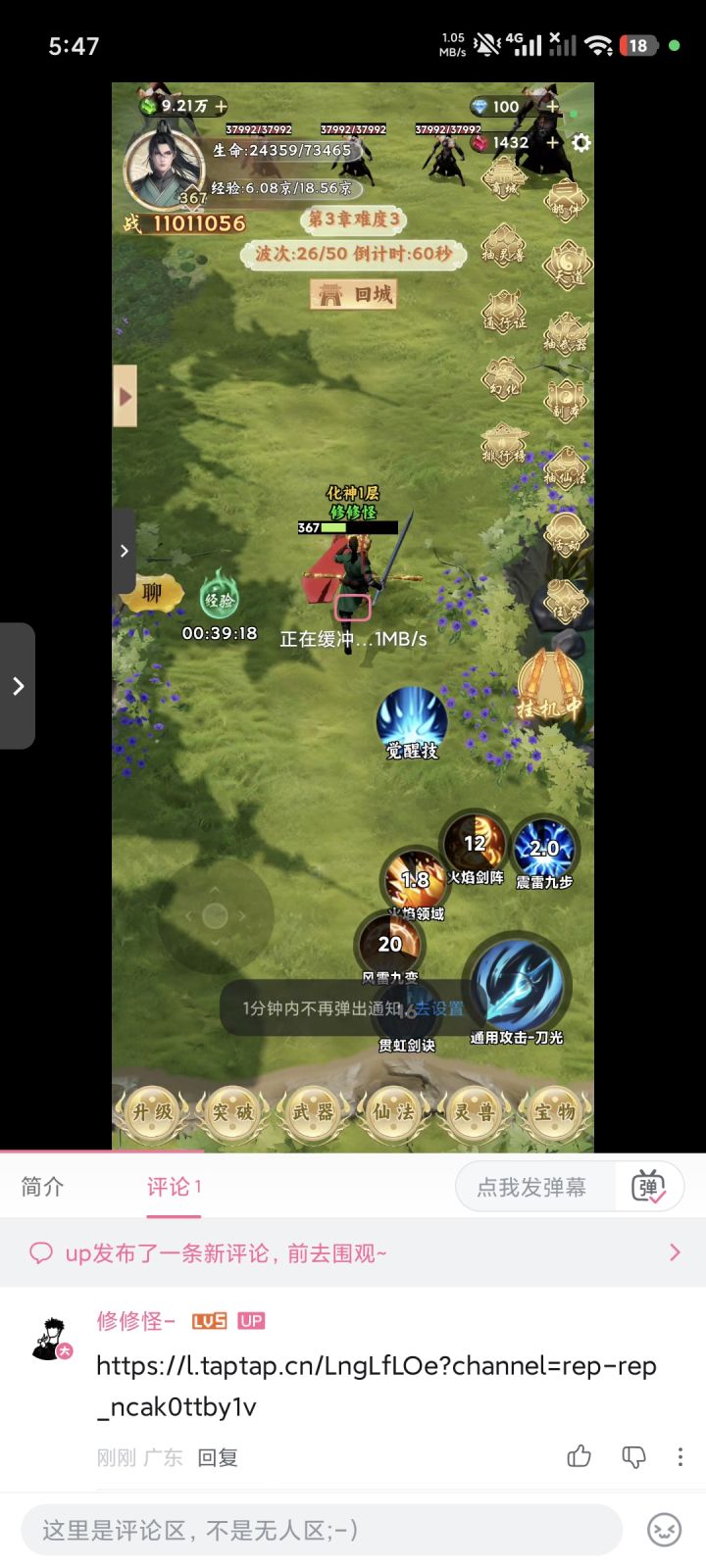 阶段性建议:100来小时,花了几百块。 说说关于仙法方面最大的问题:仙法等级。 目前来看仙法技能等级提升只对风雷九变(攻速)和震雷九步(移速)有效(因为一个是百分比一个是小数值)。 进入正题,这游戏在初期dps数值就会呈指数上升,对于动辄几亿几十亿的技能伤害,技能等级提升上百级给的几十几百的数值几乎形同虚设,仙法经验更是没有获取的欲望,当然升星也不难,一定的消费加每日的薅羊毛想升星也不难(可