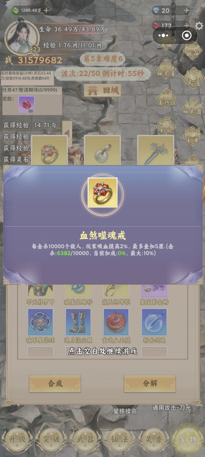 #新手攻略 每天任务必做,仙石不要乱花留着买精血, 灵石抽武器就抽最低价的宝箱然后合成制作就好了,宠物跟功法不要盲目去抽,不一定就出好的,建议充个悟空基本够用了,前期没有仙石买精血就加点先加暴击跟生命,后期再开始做法宝,前期基本上不会出高级法宝。氪金优先终身卡跟称号