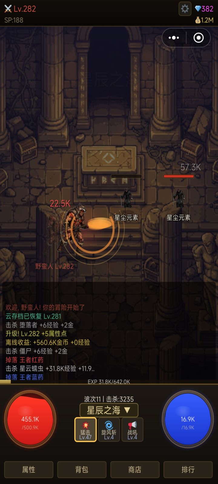 4.有自动换装,自动释放技能,自动售卖,自动…不过这些需要钻石才能开头,钻石可以看点广告,不过每天就10个广告奖励钻石,有点太少了