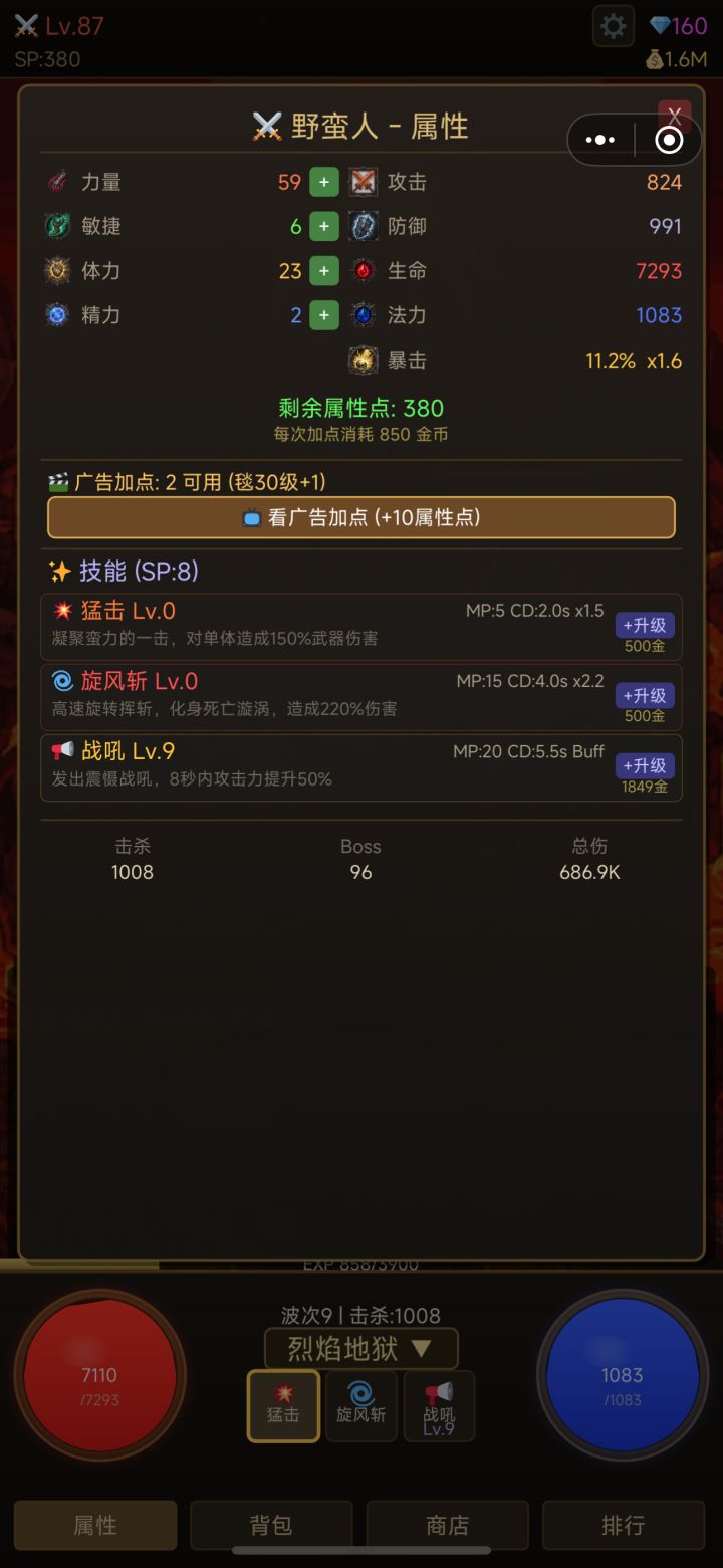 玩了几个小时,发现这个游戏还不错,主要有以下特点1.离线效率是在线一半2.没有强制氪金3.加属性点需要看广告,也就四五个广告就可以加十几点,一会再看广告,再加属性点,这样循环4.有自动换装,自动释放技能,自动售卖,自动…不过这些需要钻石才能开头,钻石可以看点广告,不过每天就10个广告奖励钻石,有点太少了