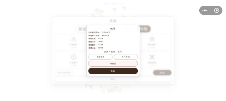 ▼适配相关当前游戏优先完成了PC端的适配工作,移动端正在加急适配调整中~带来的体验不佳十分抱歉▼导出导入相关由于TapTap小游戏功能限制,导出存档和导入存档功能可能出现失效,十分抱歉!▼交流反馈欢迎各位玩家提交评价/吐槽正向的负向的都很好!感兴趣的玩可以加入交流群!QQ群号:1081504906