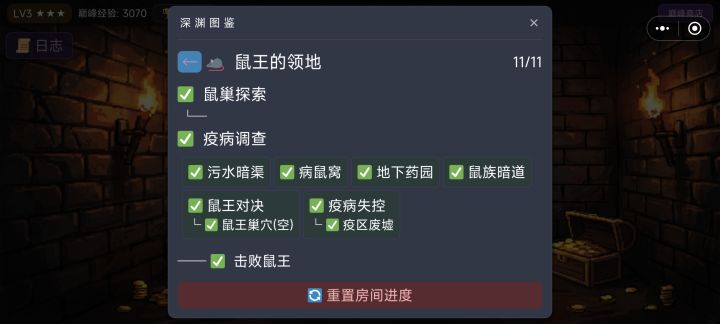 疫病失控触发条件是污水暗渠、病鼠窝、地下药园、鼠族暗道四个分支中的进度足够小(部分卡牌选择后会提示进度+1),如果没有解锁疫病失控,要先重置房间进度,然后在触发裂缝鼠王的领地,第一个会进入鼠巢探索这里必须选择事件,且4-6才能往后继续,否则下次进入的还是鼠巢探索,出了4-6后剧情继续走如果进入了污水暗渠,可以参照图上的走法如果进入了病鼠窝,可以参照图上的走法,不要销毁巢穴,选提取毒素如果进