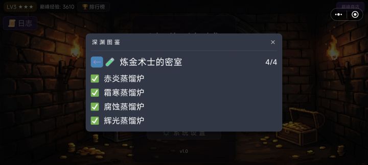 炼金术士的密室共有4个支线,没有前后逻辑关系,出哪个纯看运气,四个都需要用相应的卷轴合成出新的卷轴才能解锁,按顺序需求的基础卷轴分别需要火球卷轴、寒冰卷轴、猛毒卷轴、治疗卷轴。目前可以在第三层的第一个区域随机触发炼金术士的裂缝,即不死陵寝1/3,触发概率40%,触发后随机进入四个支线中的一个如果带了相应的卷轴进入,则可以在裂缝中的卡片进行合成,合成出新的卷轴即解锁支线,没有合成新卷轴的话不会解