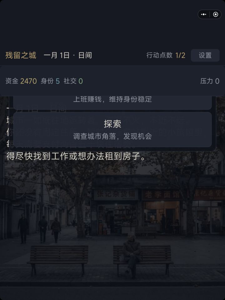 可能是自己不是这类游戏的爱好者,找到工作之后提升身份和社交,一直没有新的事件发生。不知道新的事件怎么才能触发,只能闷头挣钱。不太理解之后具体的核心玩法的点。然后npc的事件也没什么特别的了。很少有新事件发生。希望作者看看再如何完善一下。然后游戏节奏没有特别大的感受,可能也是因为没有事件触发,心流平淡直到最后感到无聊。看看后续更新吧。