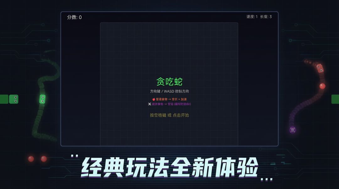 经典贪吃蛇玩法,加入腐败食物机制增加挑战性