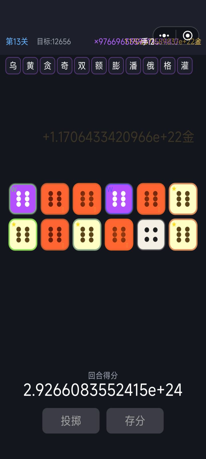 有bug哇,所有加倍率的每次计分都要加一次,而且永久保留,不是应该每次重新算一次倍率么,玩到后面几万的倍率都出来了