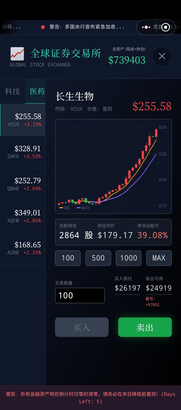 上来啥也不用干,直接把贷款全部吃完,每天问亲戚借款,然后全部买入医疗里面每股最低的那个股票微信聊天记录有就点一下王总会爆5000金币:选 收到马上到-好的,谢谢王总小胖爆两万:选 你看到什么了-急需用钱,有多少借多少老妈爆五万:这个有时候爆有时候不爆王经理爆五千:选直接提现吧龙哥选保重不用还钱,不然就得还5000公司那个选加班可以得200,太少了,没必要遇见乞丐点施舍 会给一个指尖