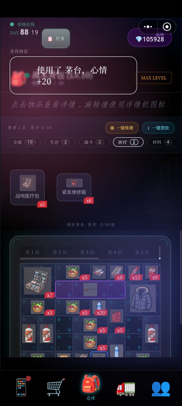 这些堆叠到底是怎么算的,急救箱、工具箱、弹药箱都会出现这种情况,食物叠不起来我可以用保质期说服自己,你这各种箱子堆不起来是为啥