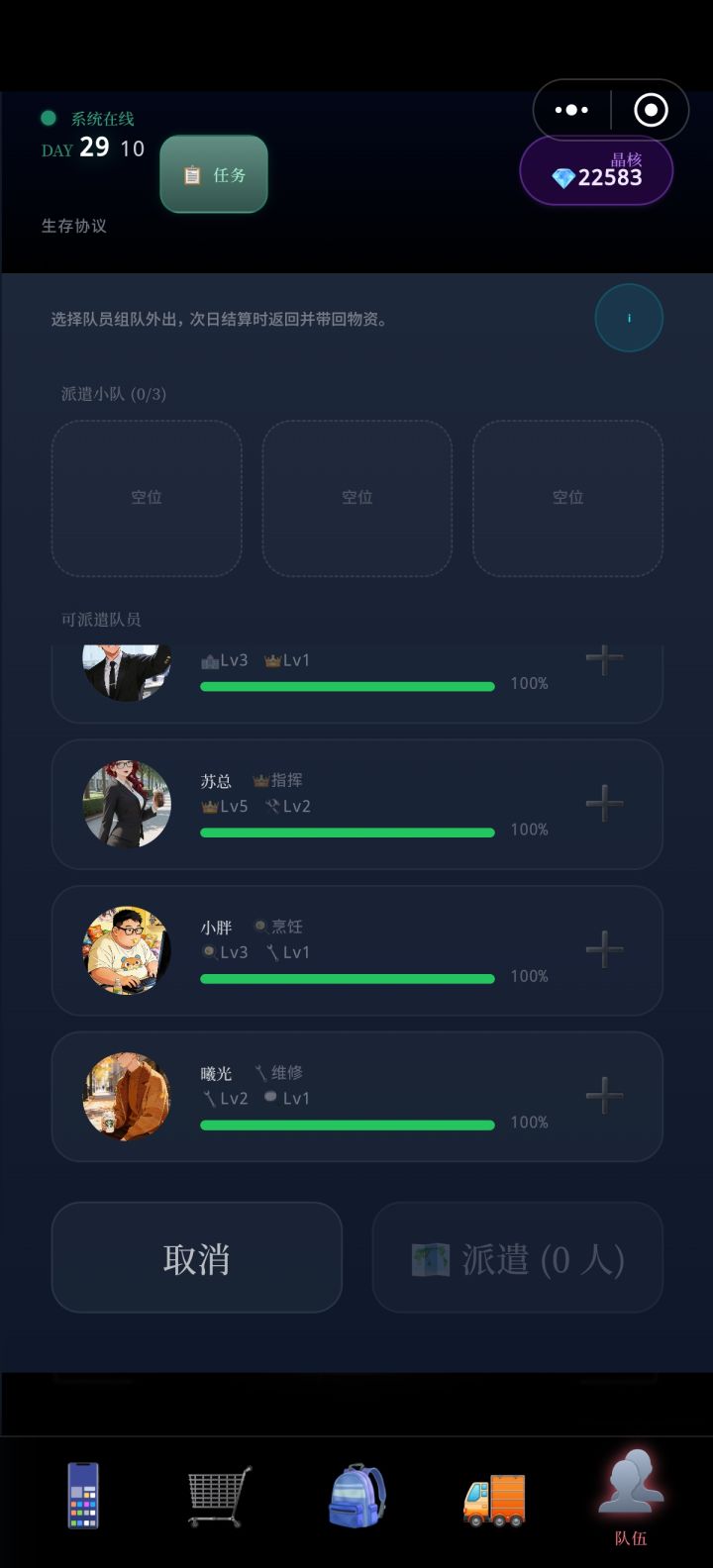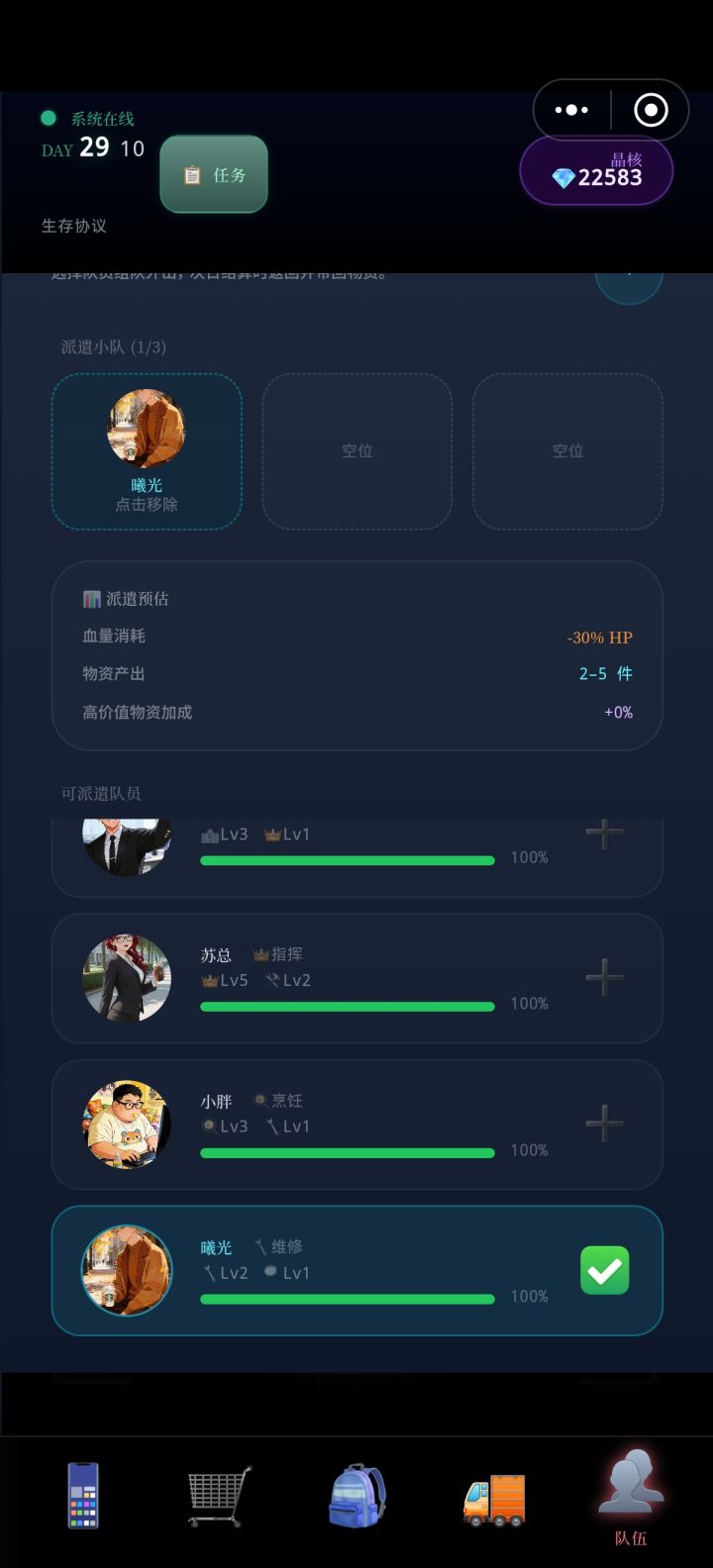 队员的作用还是太少了,派遣完全可以改成自动派遣。装备强化的材料是不是有点过多了,僵尸水晶每天限购20强化不了几次,这种算稀有材料了吧消耗有点大,爬塔也刷不了多少。感觉可以多个副本是可以刷水晶的,守卫战都是尸潮了僵尸身上就只掉那个钱吗,守卫战感觉可以加掉落僵尸水晶。后面战斗强度改上去了就把队员也加入回合制攻击呗。按理说回合制对战我带了三个队员不能每回合输出也有点弱