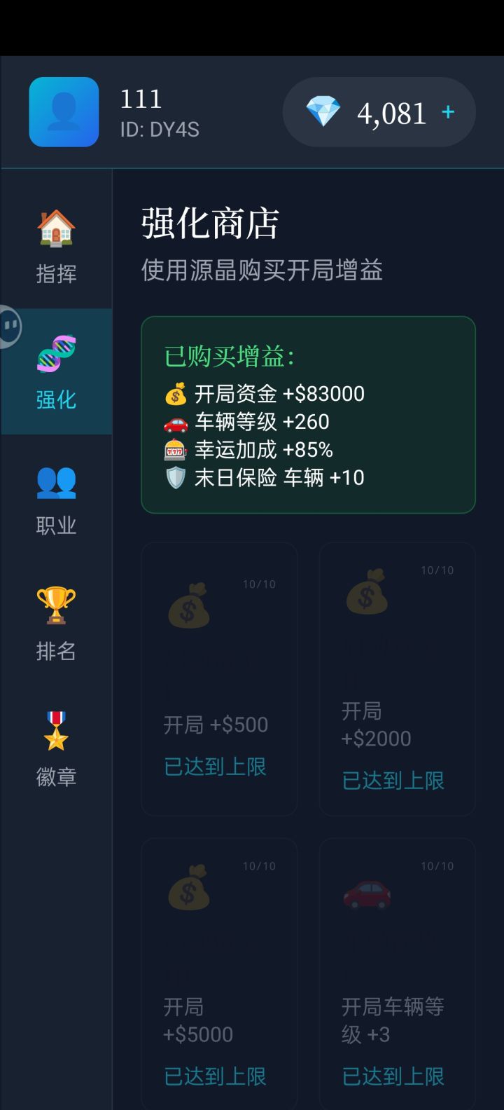 开局就去股票那刷钱最后两天就点一次买或者卖再退出重复到末日开始就可以有1000晶多刷个几次就可以满载具入局。然后你就无敌了资源根本不缺。