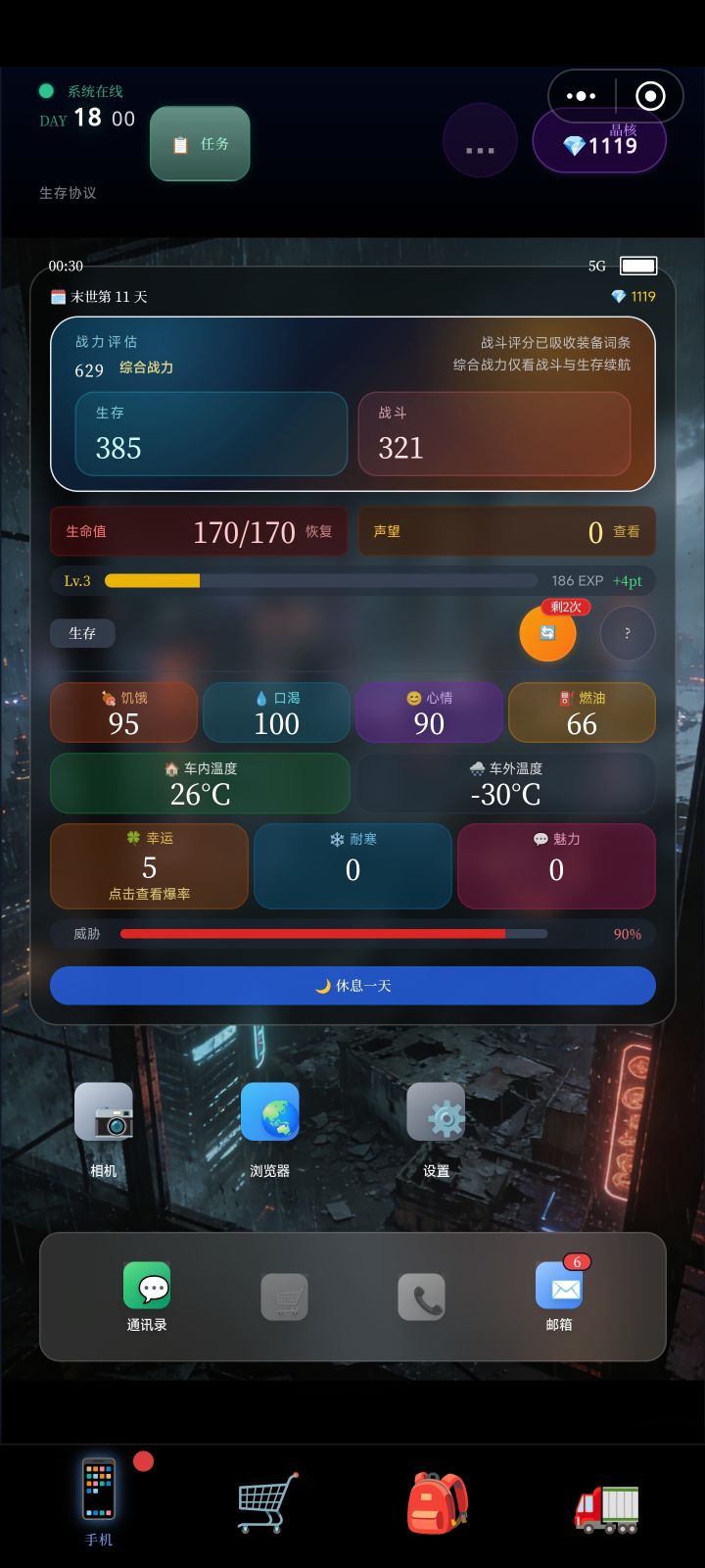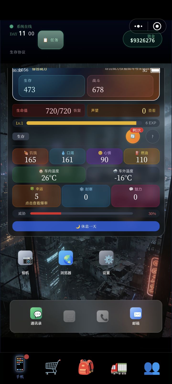 两个问题,一个问题是升级车不跳时间另一个是都第十一天了没跳装备和作战页面,整个人一脸问号😂,干啥,成纯文字养成游戏了?